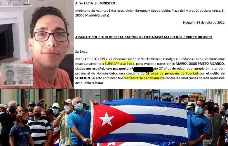 Agua y galletas, eso es lo que daban a Mario Josué Prieto para que se despertara cuando se desmayaba. Ni agua de beber ni galletas para comer. Agua y galletas de las que se propinan, dejándolo medio muerto. A continuación ahondaremos en ésta y otras torturas que el preso español ha visto y recibido desde su detención -y posterior encarcelamiento-, por participar en las manifestaciones masivas del 11 de julio de 2021 en Cuba, hace más de 14 meses.