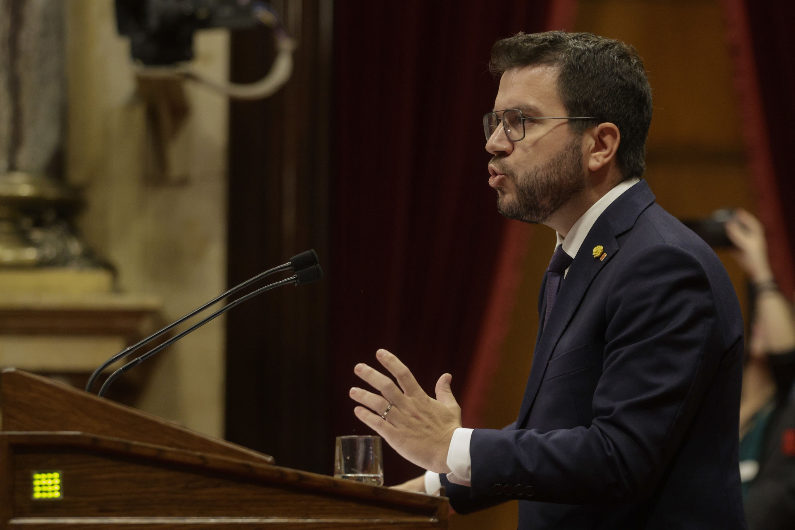 El culebrón de la crisis del gobierno catalán se ha trasladado este viernes al parlamento autonómico. El presidente de la Generalidad, Pere Aragonès, ha pedido la palabra en la reanudación del debate de política general para insistir en su autoridad, exigir lealtad a sus todavía socios y advertirles de que está dispuesto a gobernar en solitario. Aragonès prosigue con sus gestos de autoridad. "Yo siempre daré la cara en los momentos difíciles", ha proclamado de entrada. Y tras subrayar que hay que afrontar "los problemas urgentes y el conflicto con el Estado" y no los problemas internos de los partidos, ha fijado el marco: "Mi apuesta es que el gobierno pueda continuar, pero sobre todo un gobierno compactado y centrado en dar respuesta a los problemas".