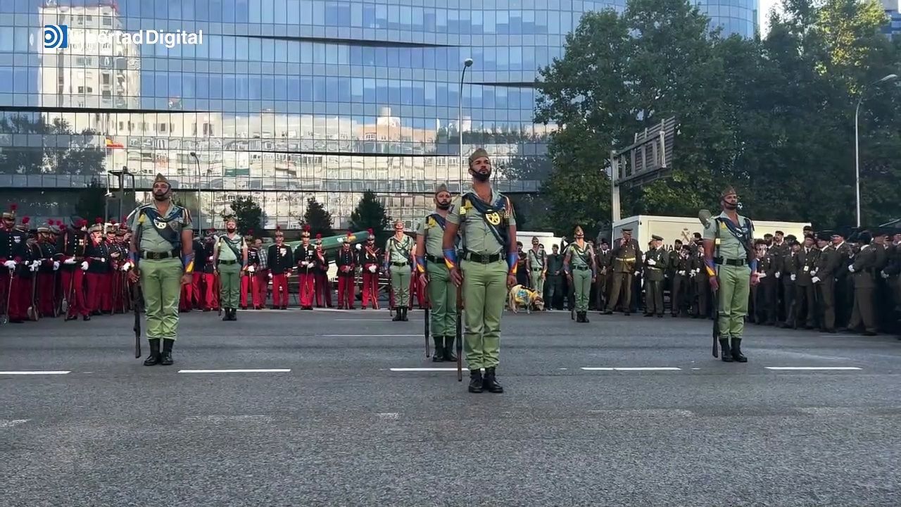 La última agrupación a pie que ha desfilado durante la parada militar ha sido, como siempre La Legión, la más esperadas por el público. Con una cadencia de 160 pasos por minuto —la cadencia habitual es de 124 pasos por minuto— han desfilado miembros del Tercio Alejandro Farnesio Nº4 de La Legión, acompañados este año por su mascota, un carnero llamado Titán, que hizo las delicias del público.