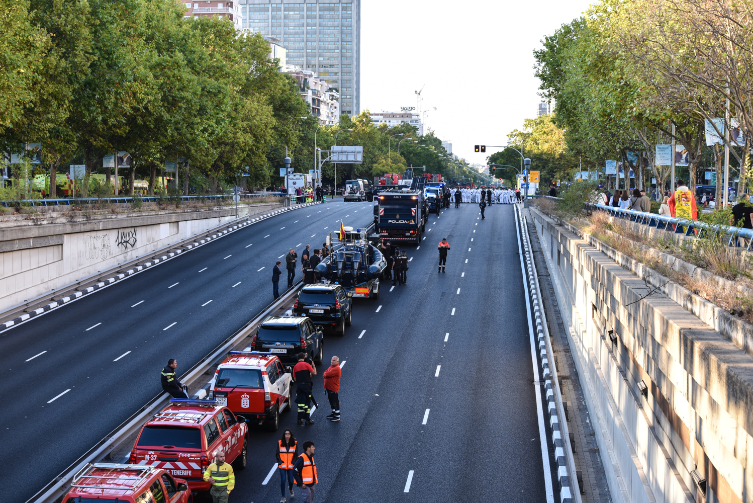 El paseo de la Castellana, desde Plaza de Castilla hasta la plaza de Cuzco ha sido el recorrido elegido para la disposición de tropas y vehículos antes del desfile.