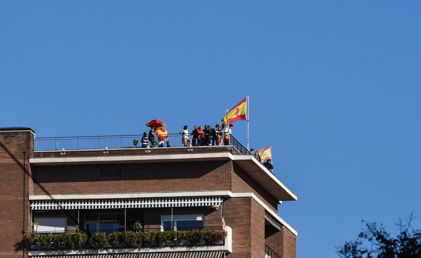 Las azoteas de la Castellana madrileña se han engalanado con bandera de España y mucho público para presenciar el desfile.