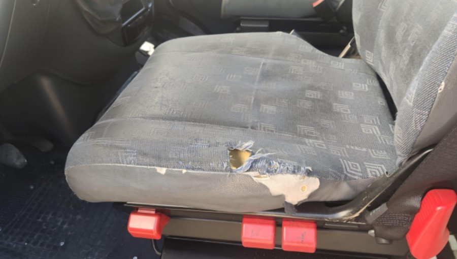 Uno de los vehículos de conducciones de presos y detenidos con agujeros en el asiento.