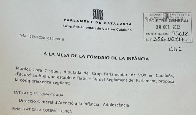 Así se desprende de los datos ofrecidos el pasado 17 de octubre por el propio Gabinete Jurídico del Gobierno catalán a petición de Vox Cataluña, que han motivado que la formación de Santiago Abascal pida la comparecencia de la directora de la DGAIA, Ester Cabanes, en la Comisión de Infancia del Parlamento catalán. La solicitud fue registrada el pasado viernes, 28 de octubre, por Mónica Lora.