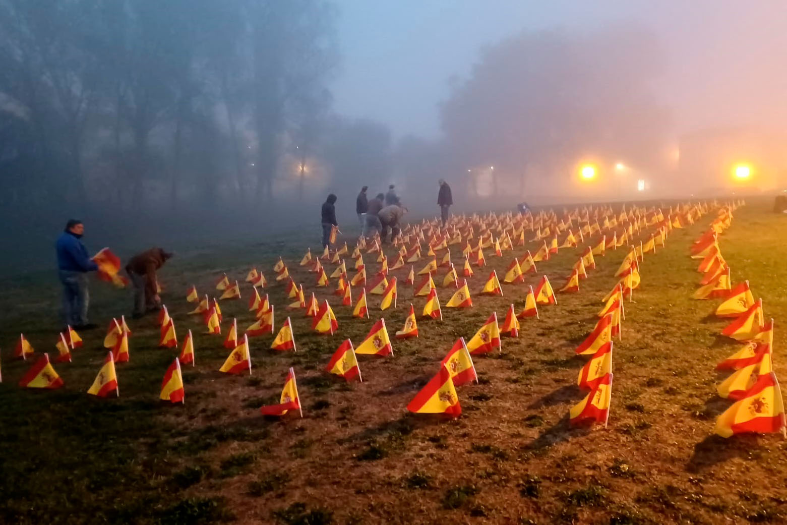 Vitoria ha amanecido este jueves con un curioso cambio en su paisaje: 375 banderas españolas estaban plantadas en la campa ante la basílica de San Andrés y San Prudencio, en Armentia, en una acción que ha desarrollado Vox para recordad a las víctimas de los 375 asesinados de ETA que siguen todavía sin resolver.