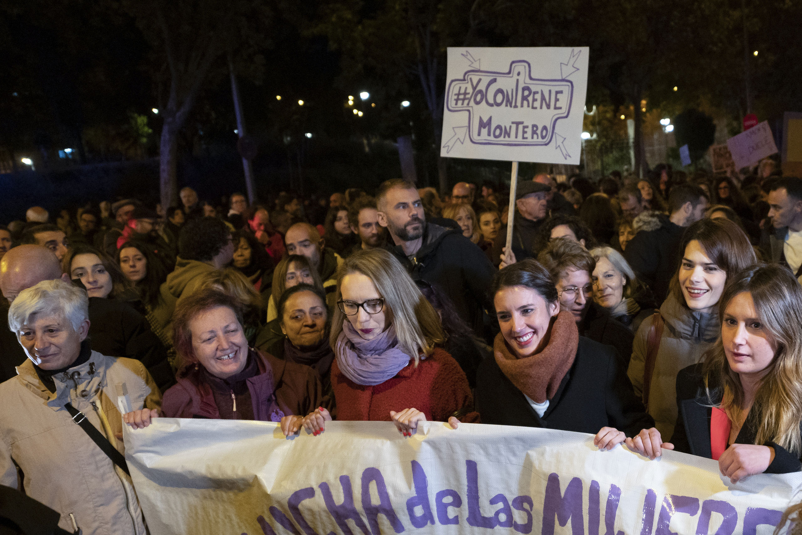 Más de mil personas se han unido a la manifestación convocada por el Movimiento Feminista de Madrid en el Día Internacional contra la Violencia de Género para pedir la dimisión de Irene Montero.