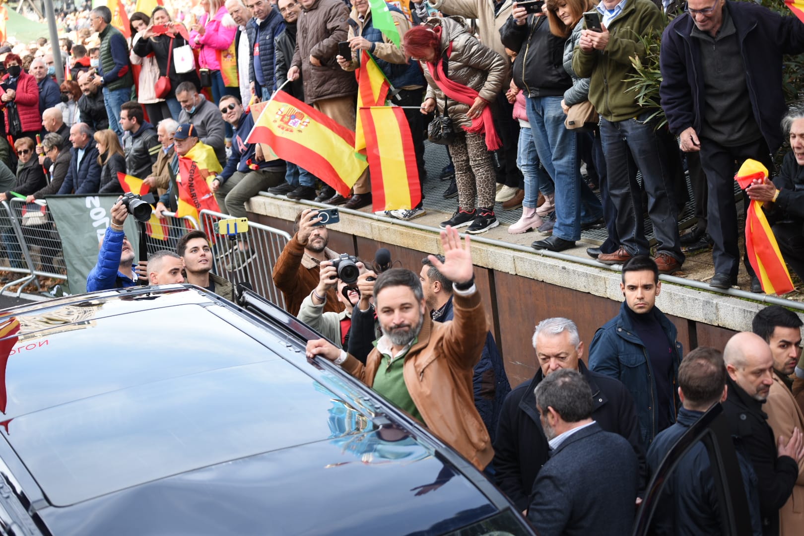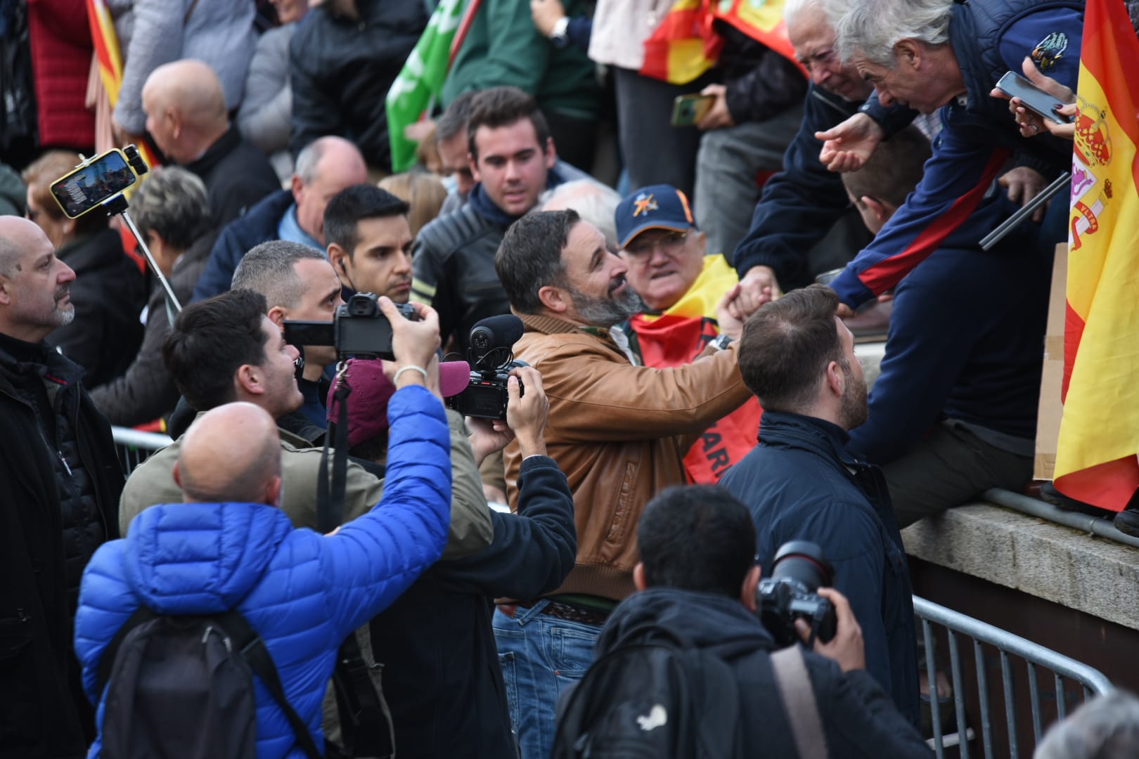 Antes de abandonar la Plaza de Colón, Abascal ha saludado a muchos españoles agradecidos con su labor.