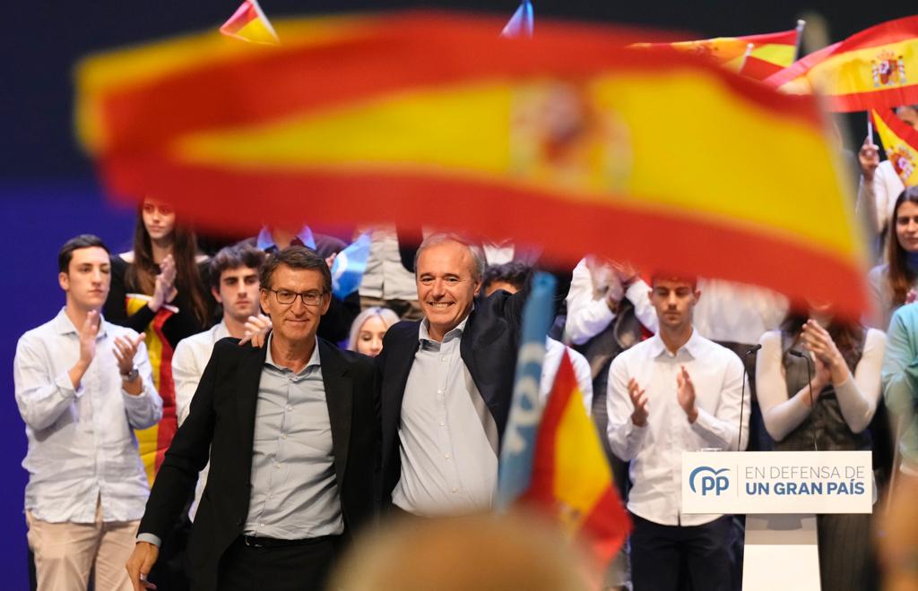 El presidente del Partido Popular, Alberto Núñez Feijóo y la presidenta de los populares cántabros, María José Sáenz, durante la clausura del Congreso Regional del PP de Cantabria.