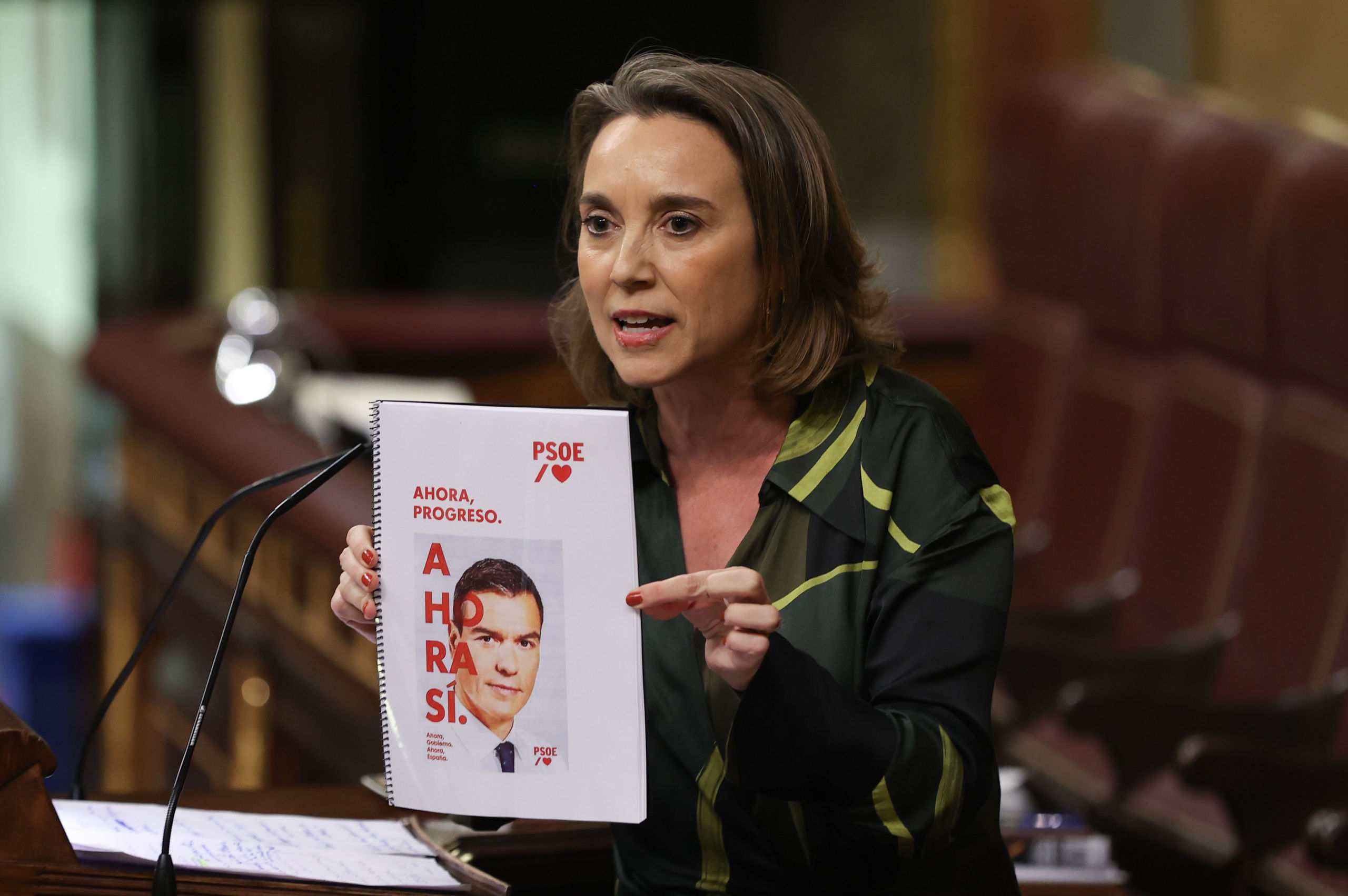 En su intervención en el pleno, una molesta Cuca Gamarra ha cargado directamente contra el presidente del Gobierno que no se encontraba en el hemiciclo ya que está en Bruselas en un Consejo Europeo.
