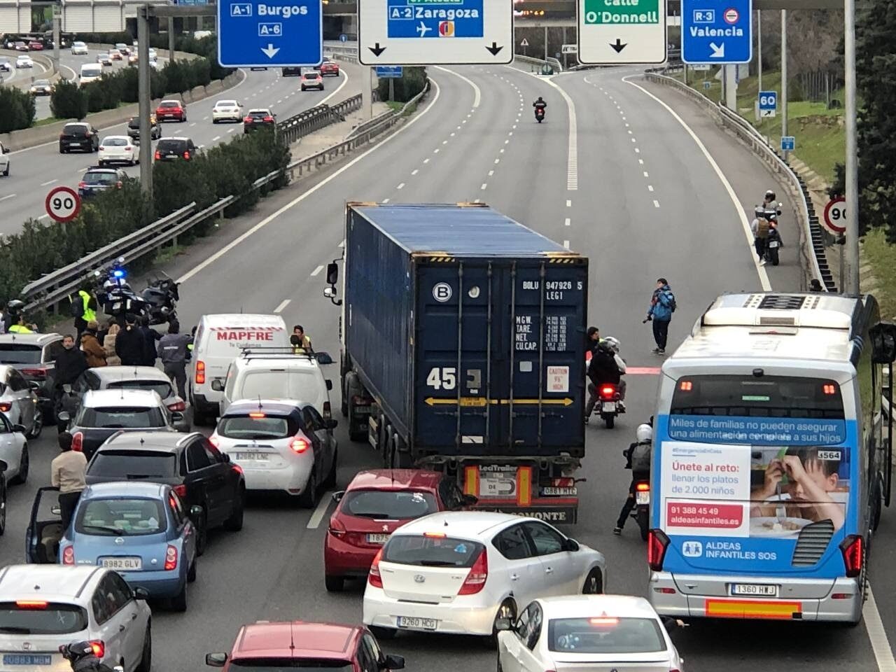 La protesta ha provocado atascos en la autopista. Según la asociación Futuro Vegetal, lograron invadir los cinco carriles de la M-30 mientras portaban carteles en los que se leía Atención obras: estamos construyendo un mundo mejor.