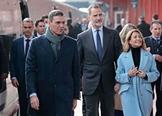 Tras el saludo a las autoridades, el grupo bajó a las vías de la estación desde el vestíbulo, momento en el que Sánchez llegó a caminar varios pasos por delante del Rey y se cruzó incluso en su camino para saludar al secretario de Estado de Transportes. Tanto el presidente del Gobierno como la ministra Sánchez dejaron atrás al monarca, que posó para los fotógrafos situados en la vía con cara de circunstancia, tal y como se pudo ver en las imágenes del momento.