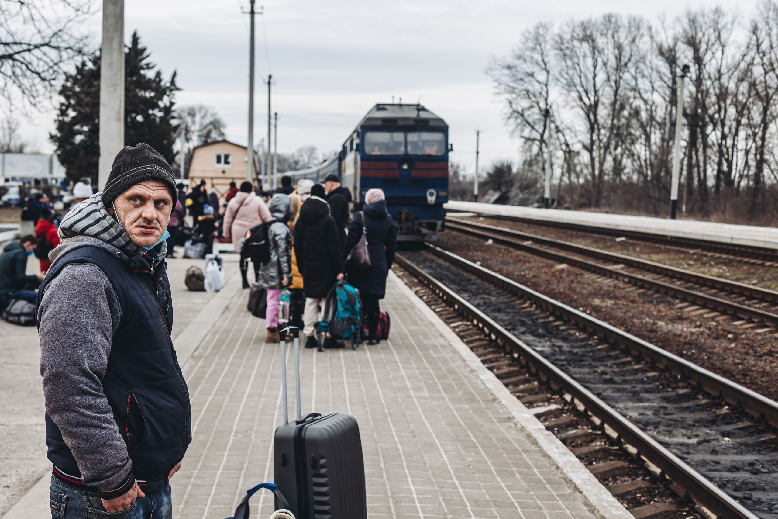 Muchas familias de Lugansk cogieron algunas de sus pertenencias y se marcharon de sus casas, tras recibir la orden de evacuación. Los andenes se llenaron de ucranianos que esperaban un tren que les llevara lejos de los ataques rusos.