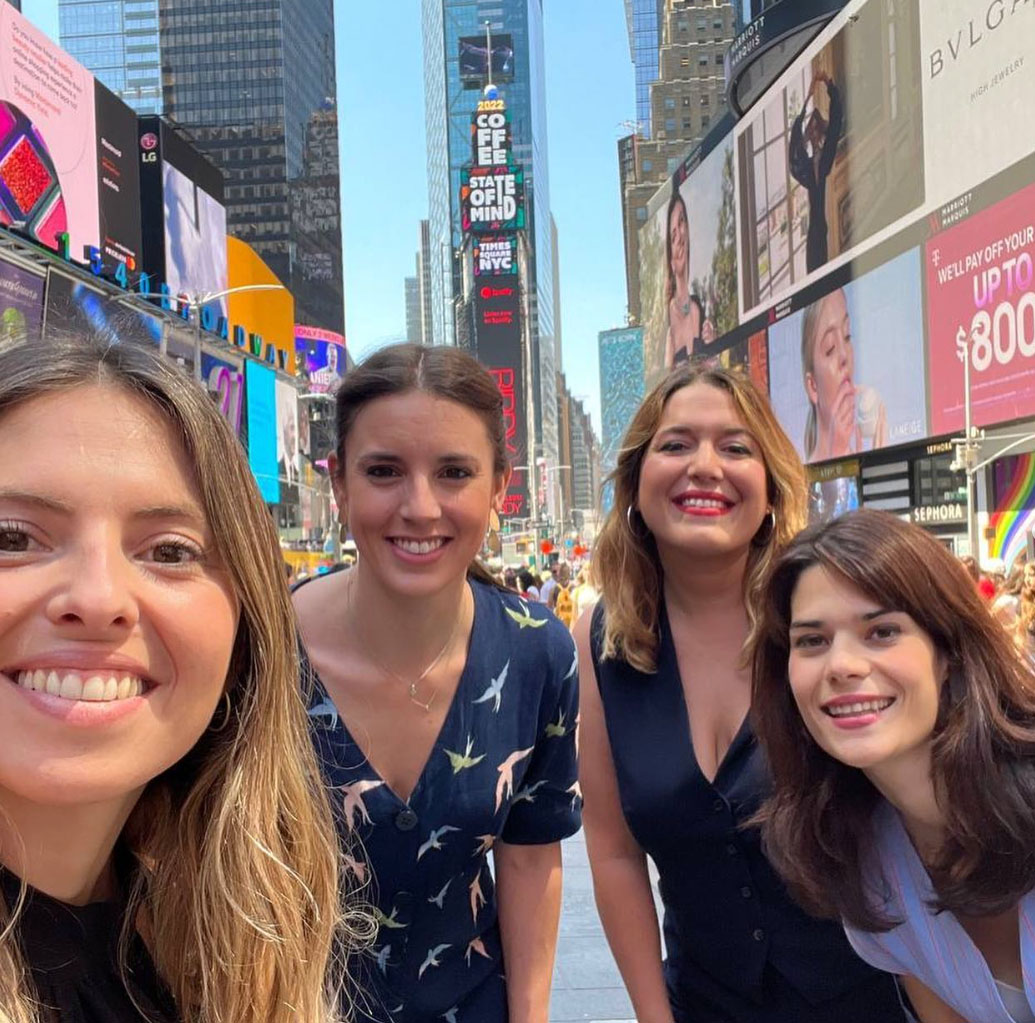 La Ministra de Igualdad y su séquito -entre ellas, la fiel Isa Serra- se olvidaron de la emergencia climática en pro de realizar, el pasado verano, un especular viaje a Nueva York a bordo de un exclusivo Falcon, sólo para ellas. El avión militar fue usado por la ‘chupipandi’ -con cargo a los contribuyentes- que en la imagen posa en la turística plaza de Times Square.