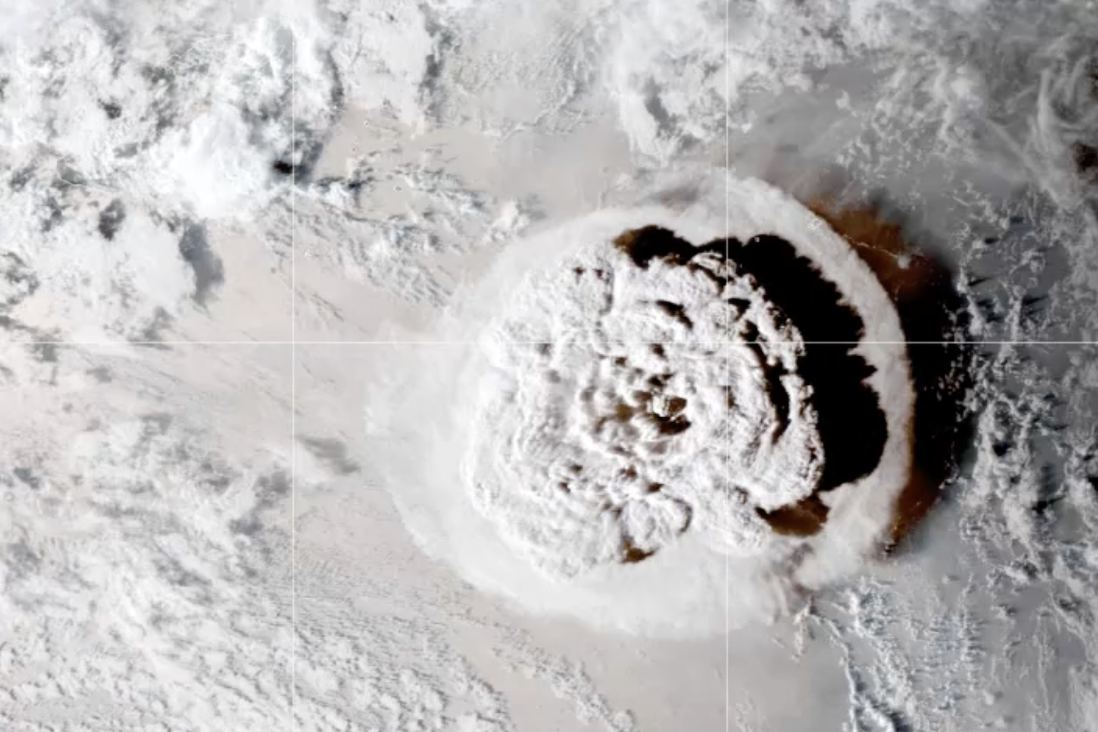 El 15 de enero, entra en erupción el volcán submarino Hunga Tonga Hunga Ha’apai, que generó una columna de humo de alrededor de 30 kilómetros de altura perfectamente visible desde el espacio, como captaron las imágenes por satélite.