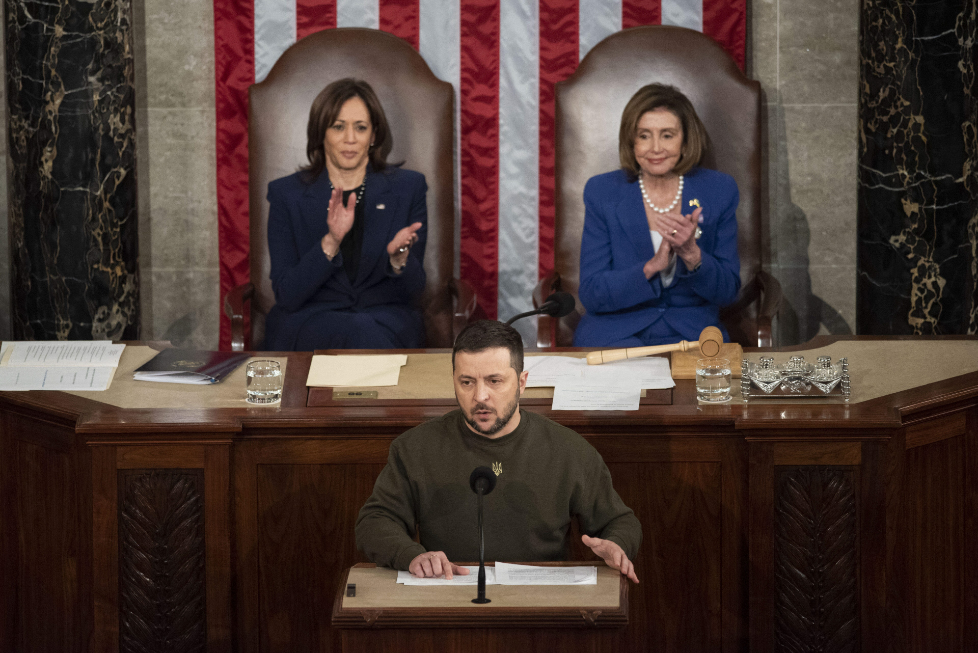 El presidente ucraniano, Volodimir Zelenski, acaba el año como un héroe. La inesperada resistencia de su pueblo y su propio Gobierno han hecho de él un líder de masas. En la imagen, le vemos durante discurso que pronunció -el 21 de diciembre- ante la Cámara de Representantes del Capitolio de los Estados Unidos en Washington, en el que insistió en que su país "nunca se rendirá".