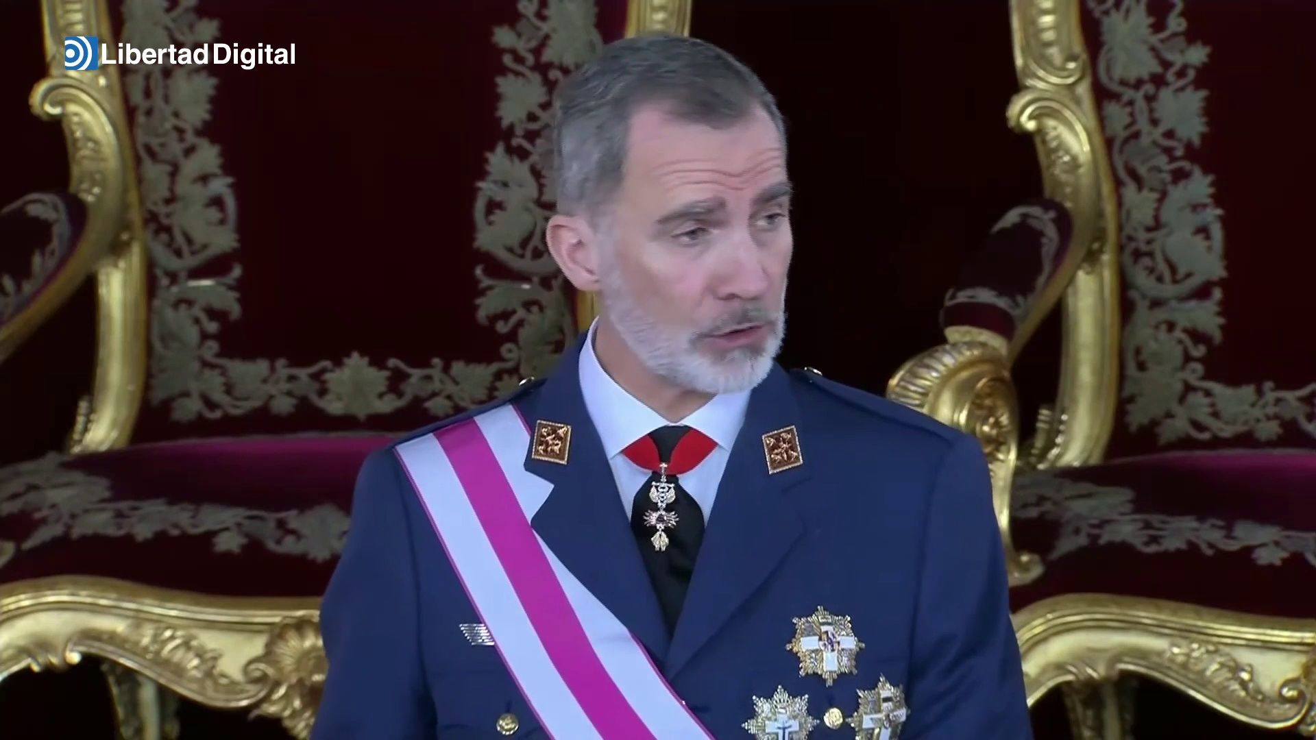 El rey Felipe VI, quien ha ensalzado la labor de los militares tanto dentro de España como en las misiones internacionales en las que participan y ha aprovechado la ocasión para rendir homenaje a los fallecidos el pasado año, de quienes ha destacado su "ejemplaridad y vocación de servicio a España".