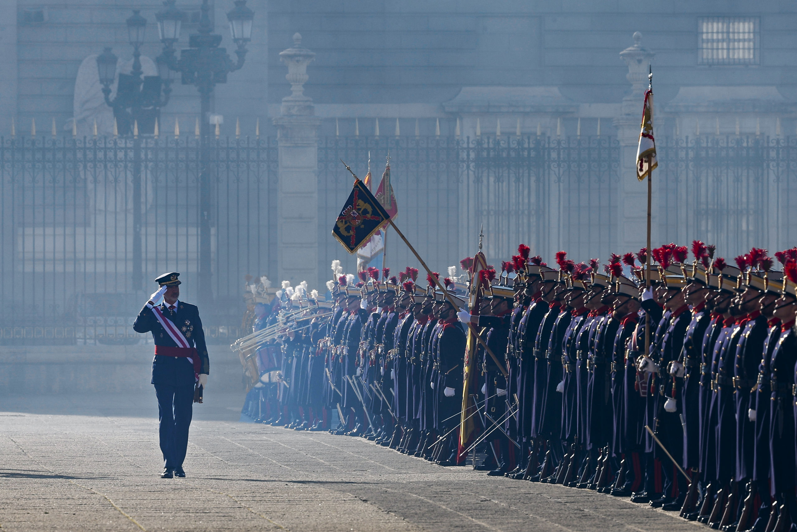 El rey Felipe VI preside la celebración de la Pascua Militar este viernes en la plaza de la Armería de Madrid, frente al Palacio Real.