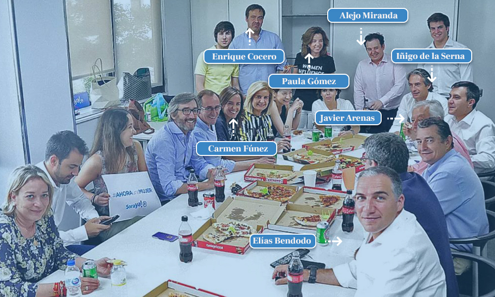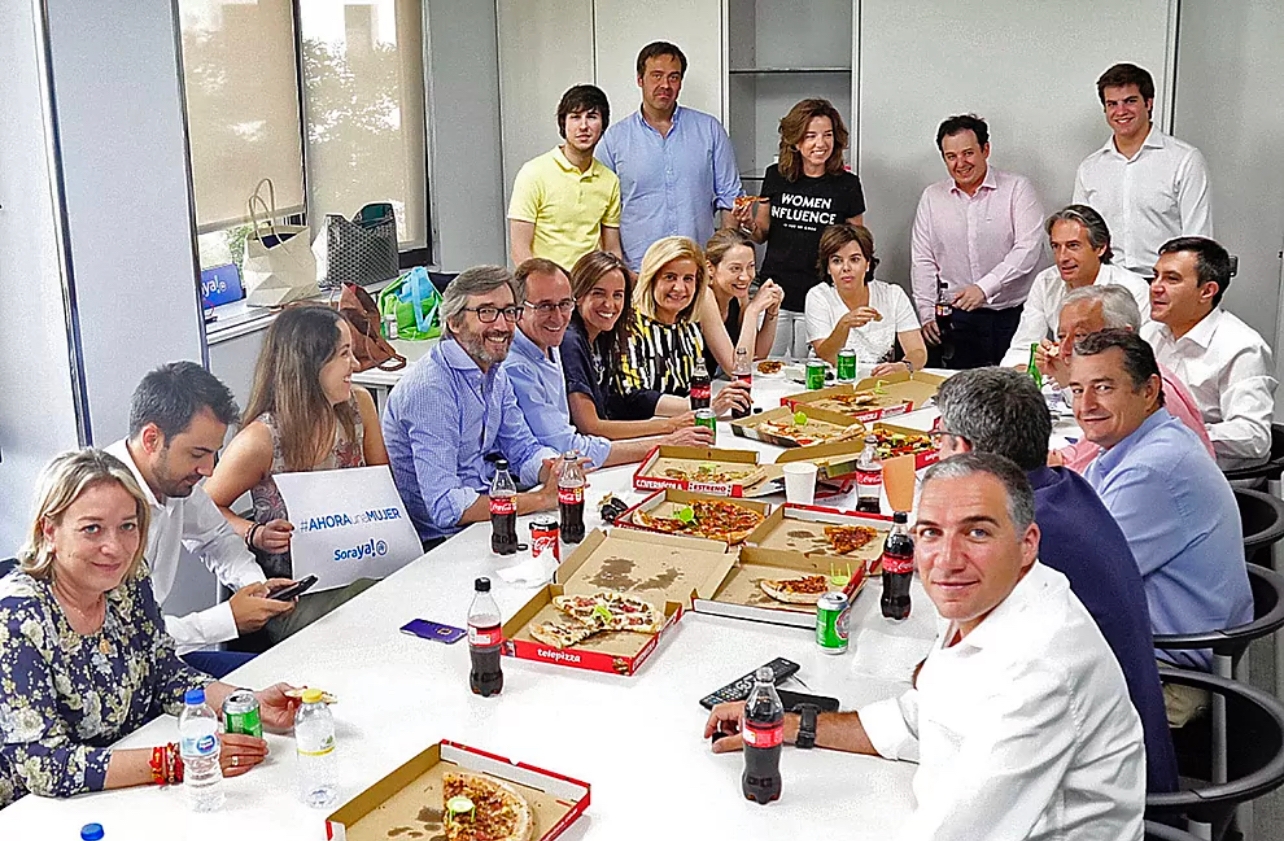 Ella era, junto a Bendodo o De la Serna, una de las protagonistas de la famosa foto de la campaña de la exvicepresidenta del Gobierno en la que se la podía ver, junto a su equipo, comiendo pizza.