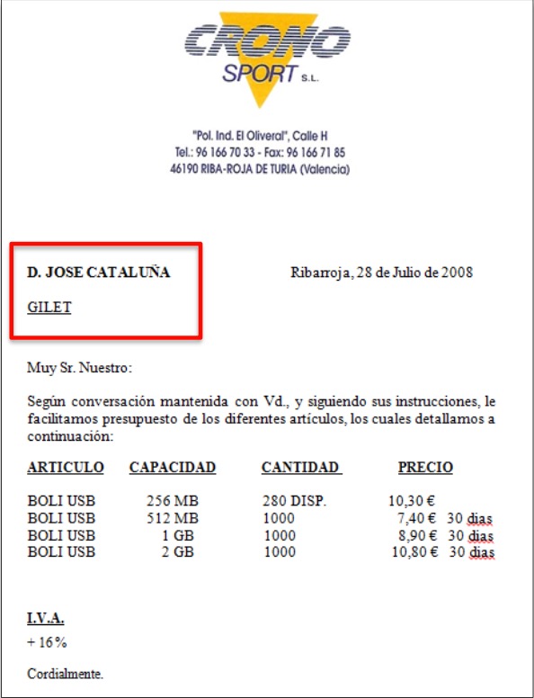 El rastro de la labor de Cataluña tras su supuesto despido como tesorero es nutrido: "También aparecen referencias a José María Cataluña en otros presupuestos emitidos por la mercantil Cronosport, relacionados con material que finalmente habría sido abonado por Facsa", de nuevo, destaca la UCO. "O en otros presupuestos relativos a productos que habrían sido facturados al PSOE, como el caso de los bolígrafos USB facturados a este partido político mediante factura nº 387 de 23.10.2008, por importe de 11.722,96€".