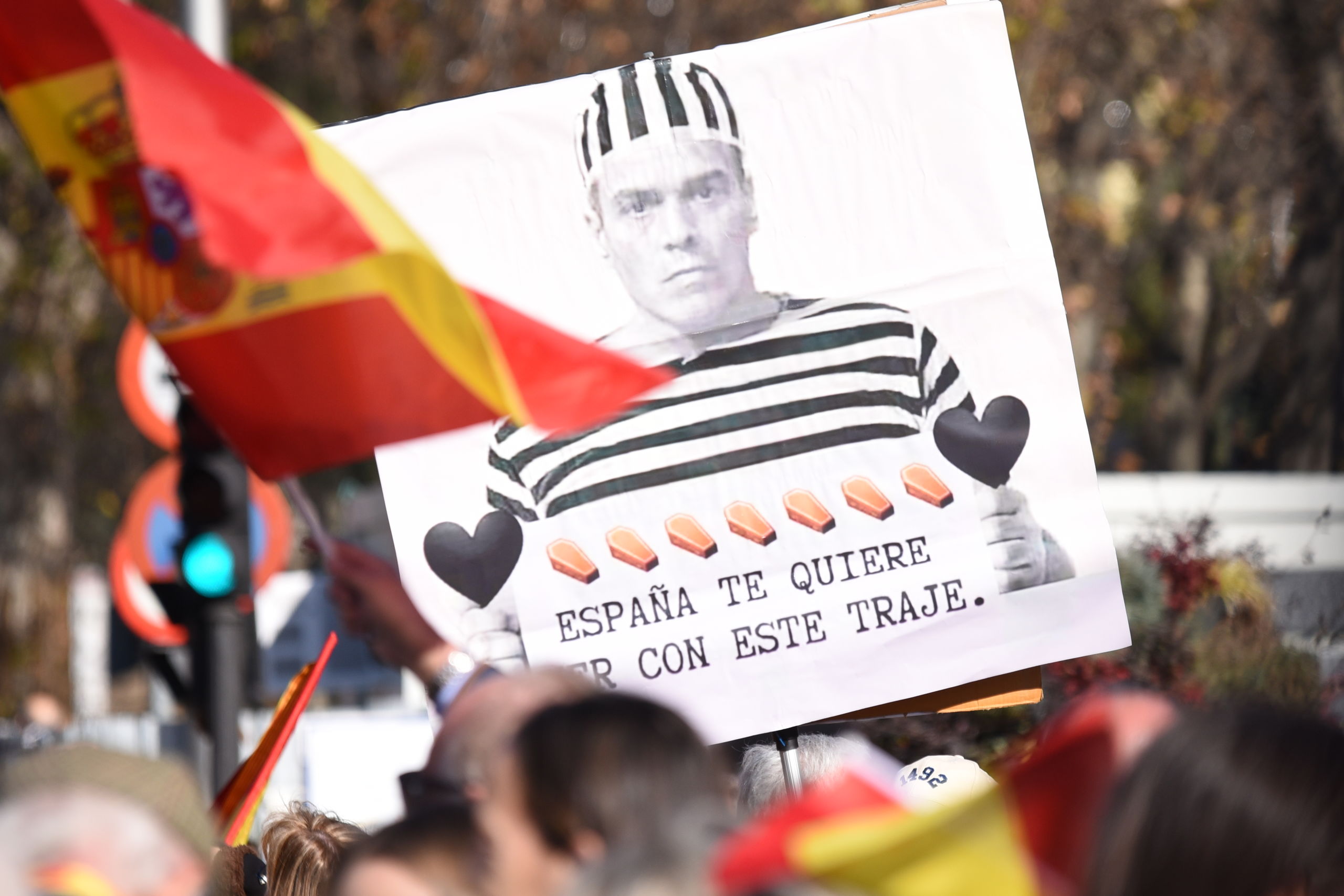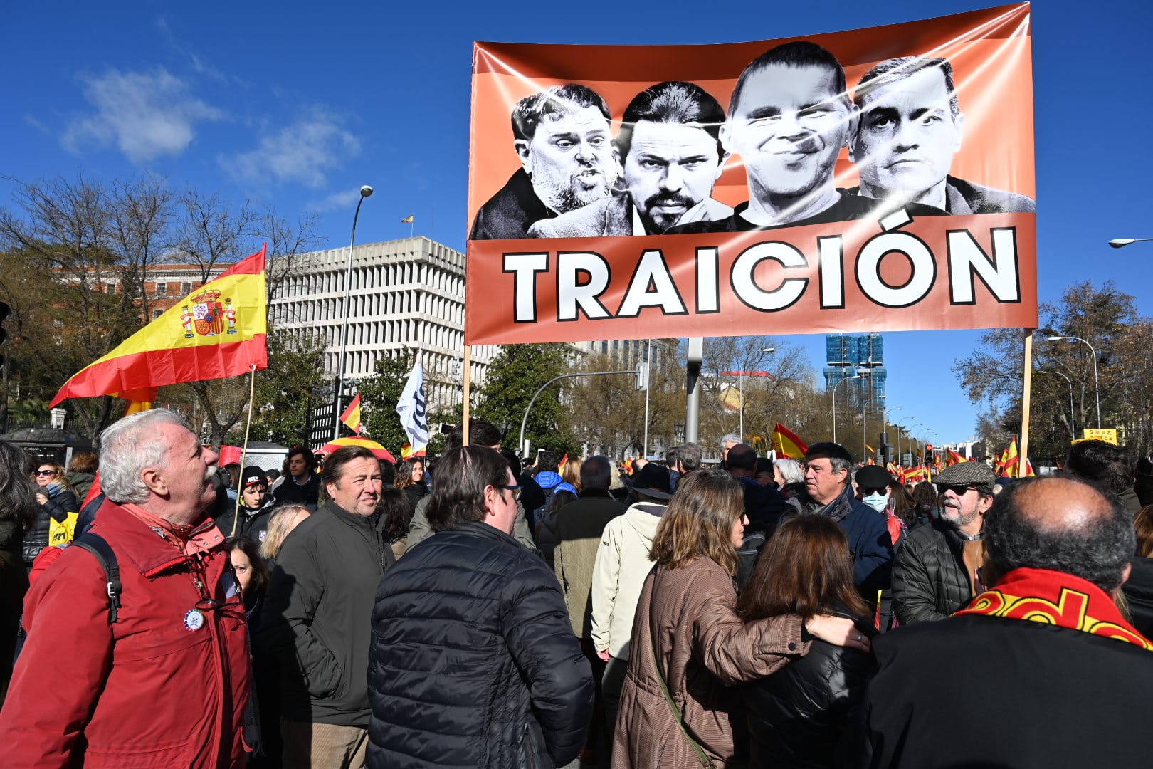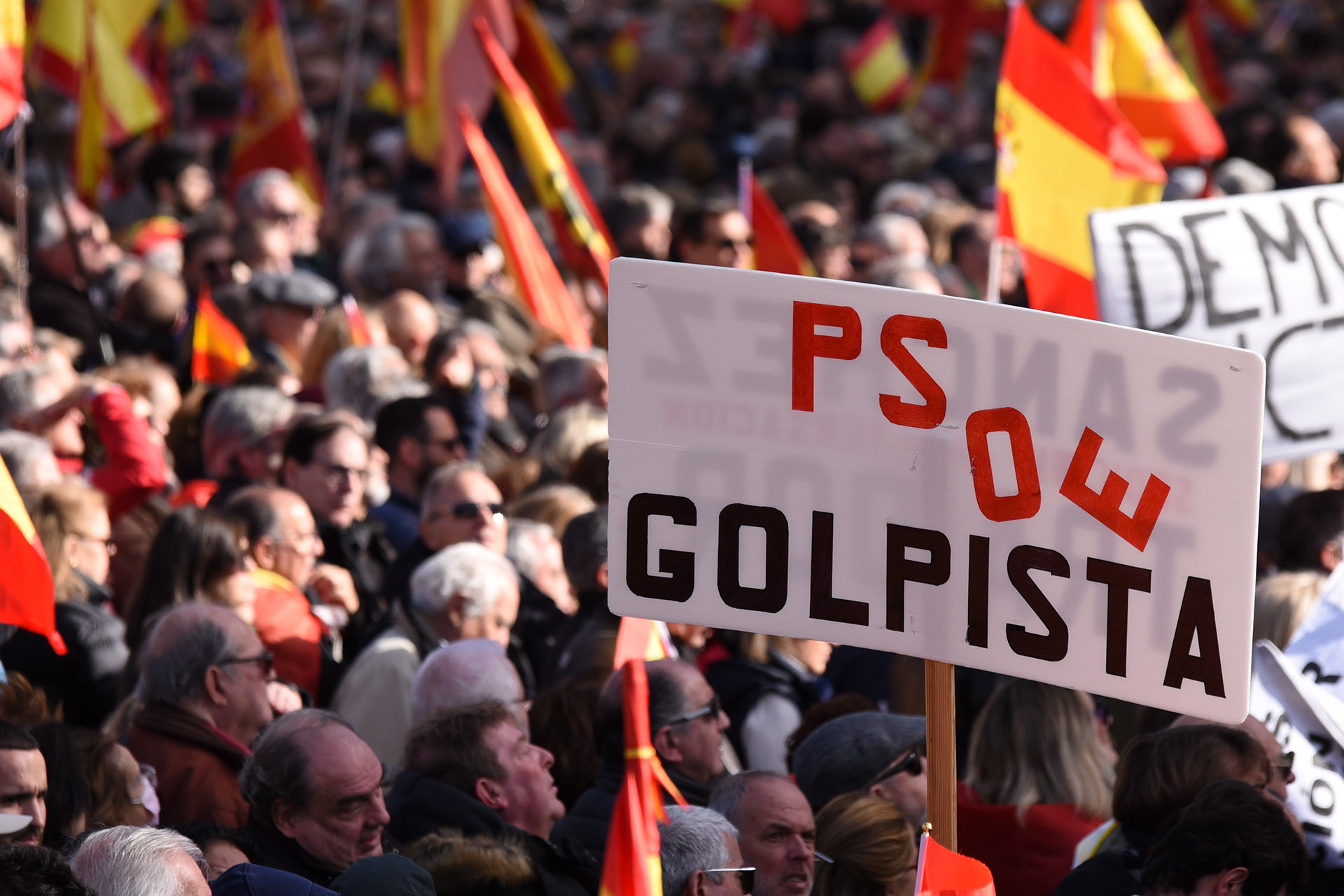 Una de las pancartas que se han podido ver en la manifestación en la que se puede leer "PSOE GOLPISTA".
