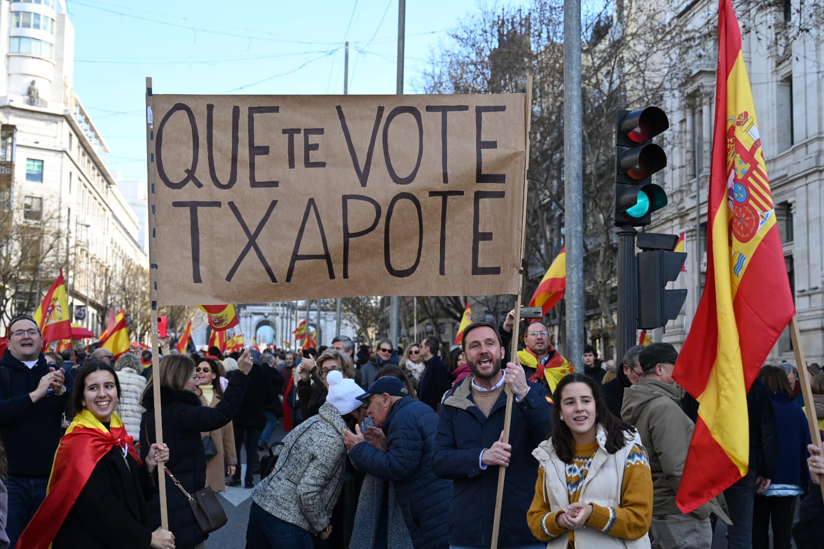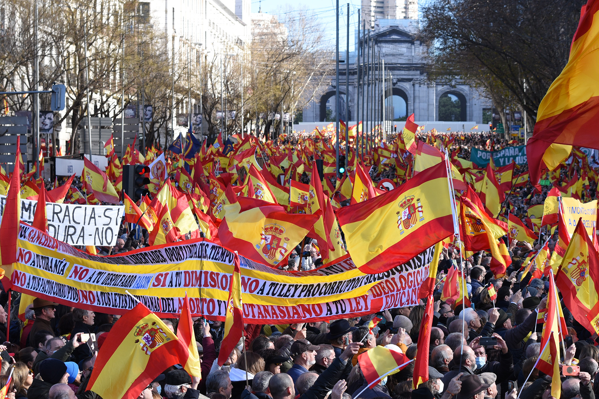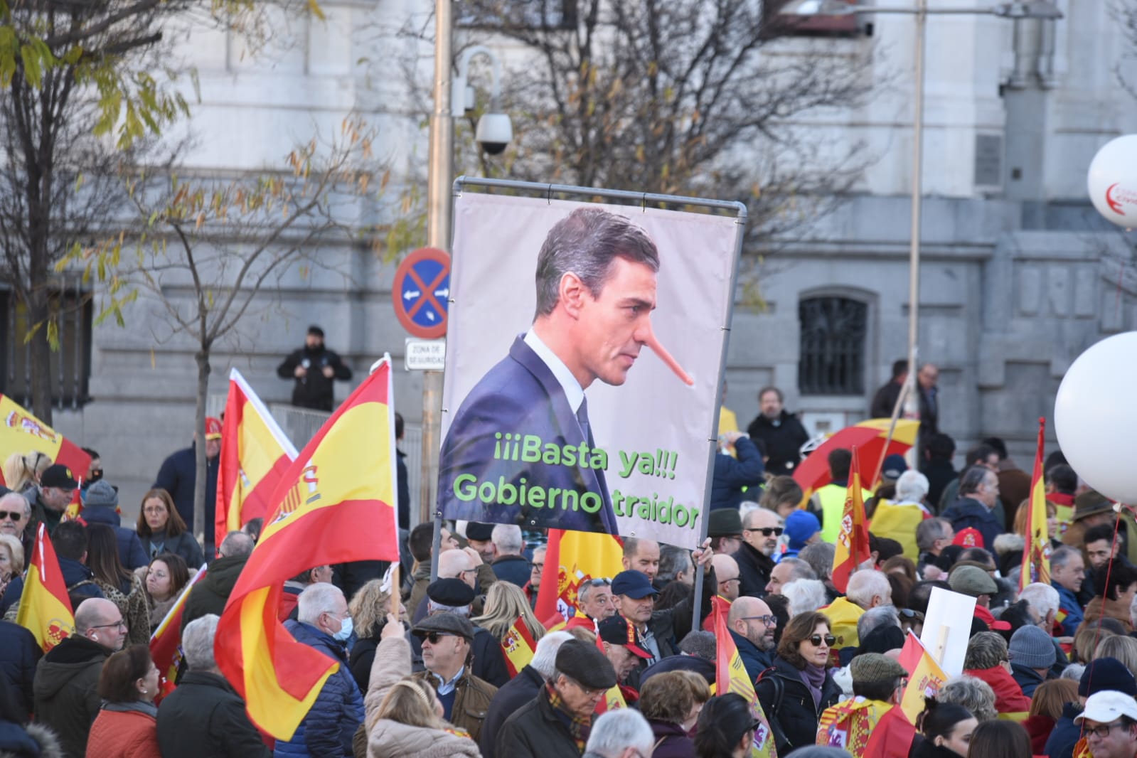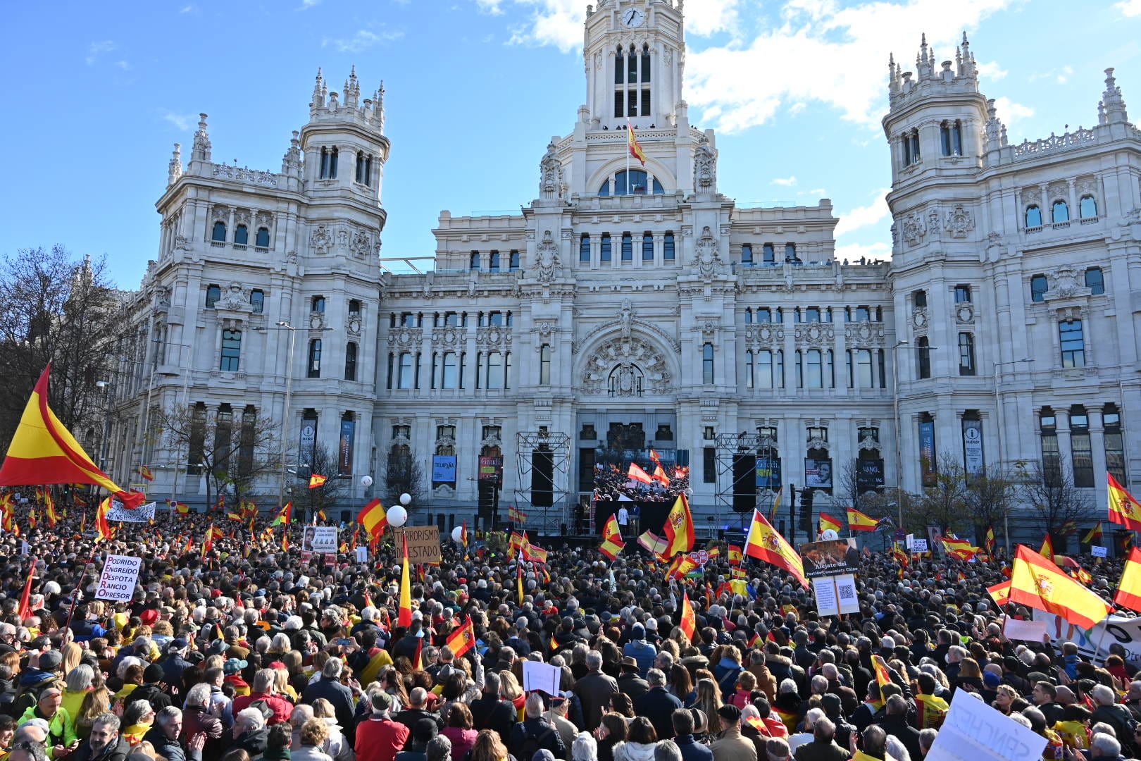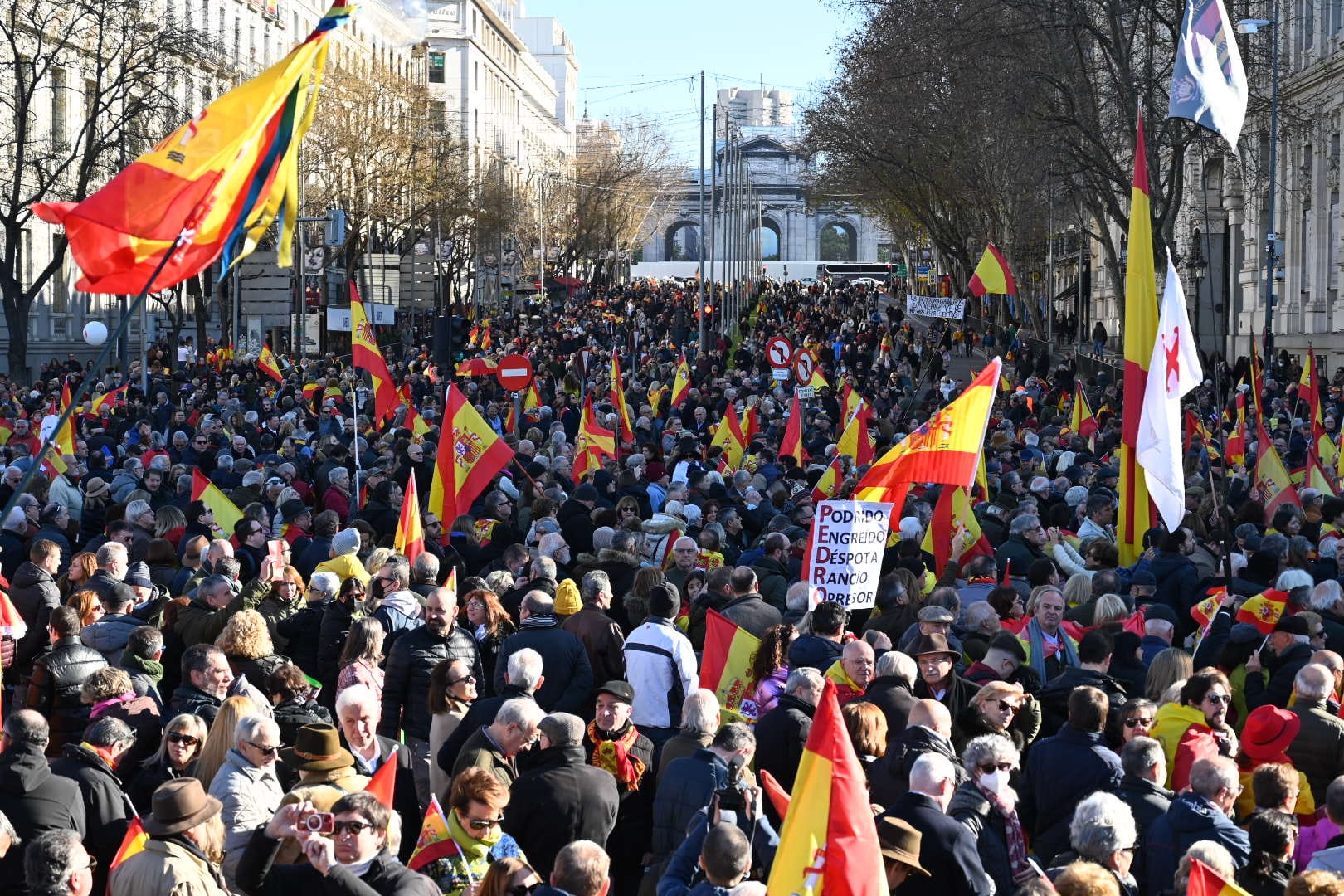 La sociedad civil se da cita por la libertad, la democracia y la Constitución al grito de "Sánchez dimisión" en una multitudinaria manifestación en la plaza de Cibeles, en Madrid.