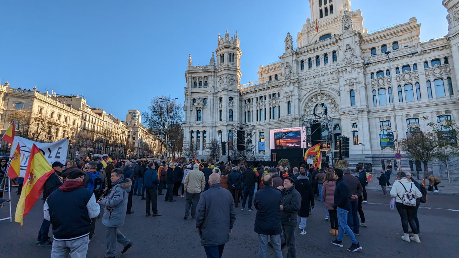 Minutos antes de que comienzo la concentración contra Sánchez, las imágenes muestran una plaza de Cibeles completamente abarrotada.