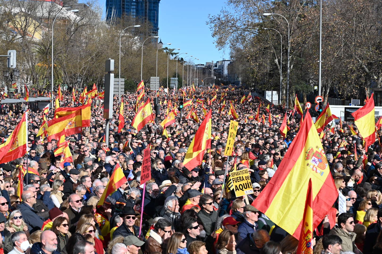 Recoletos hasta la bandera de gente protestando contra Sánchez.