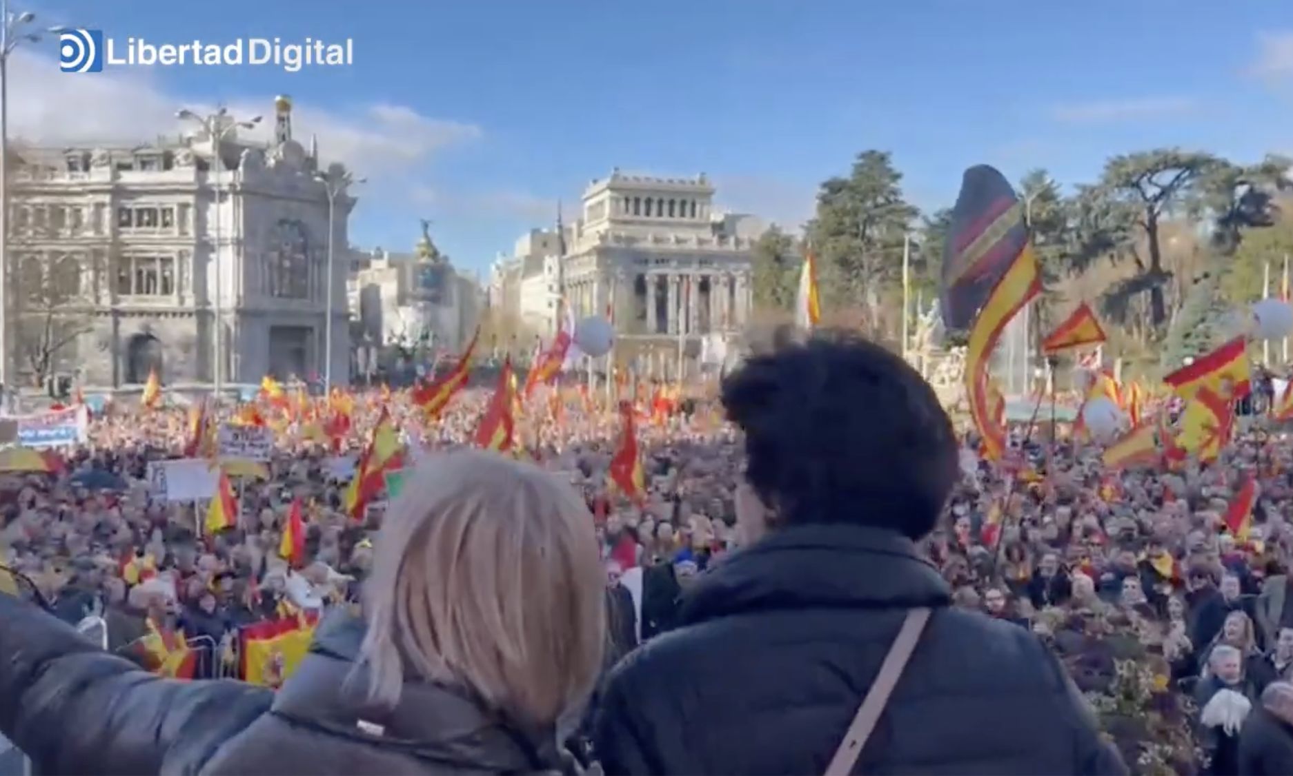 María San Gil y Jaime Mayor Oreja se encuentran con Rosa Díez y Cayetana Álvarez de Toledo antes del inicio de la manifestación contra Pedro Sánchez.