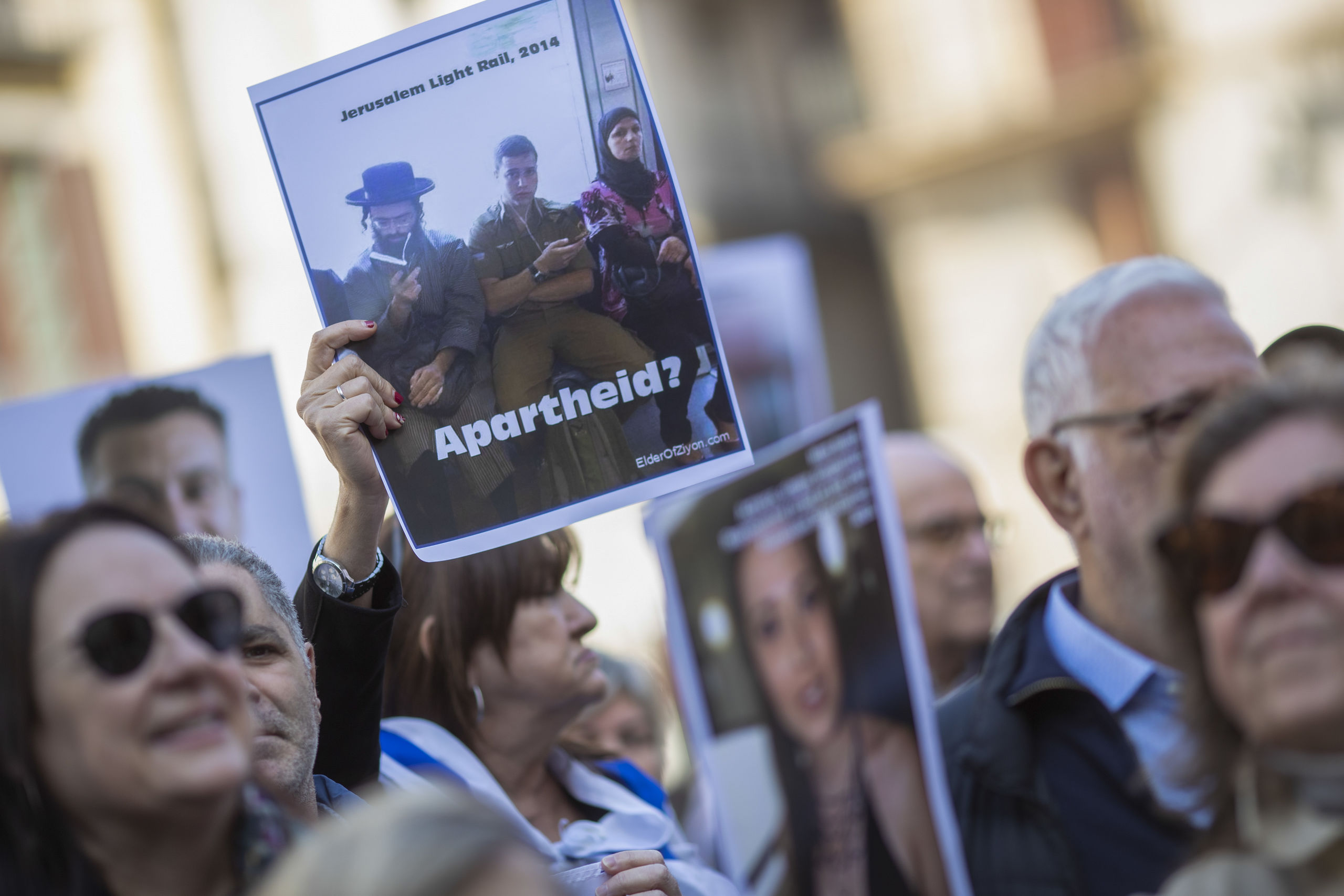 En la concentración se han escuchado cánticos contra Colau, se han leído poemas y se han realizado unos breves parlamentos en los que se ha subrayado que Israel es la única democracia de Oriente Medio. También se ha pedido a la alcaldesa que no convierta Barcelona en la capital europea del antisemitismo.