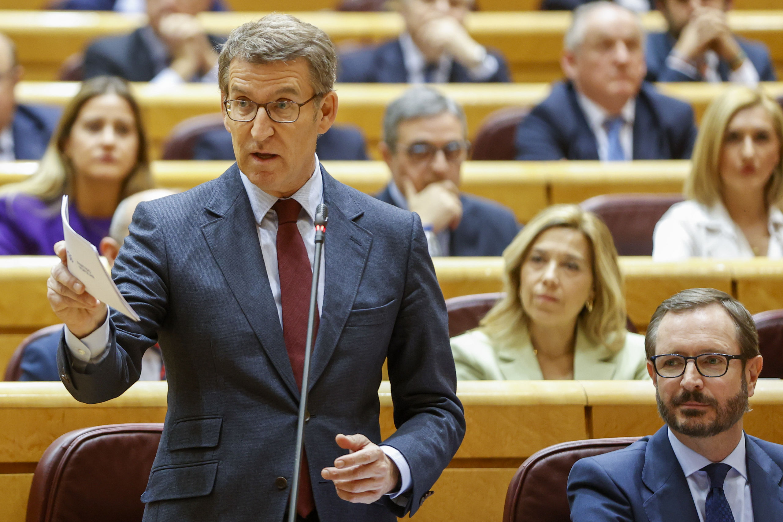 Alberto Núñez Feijóo ha realizado este martes en el Senado una batería de preguntas al presidente del Gobierno, Pedro Sánchez, sobre la Ley Trans que el Congreso aprobó el pasado jueves.