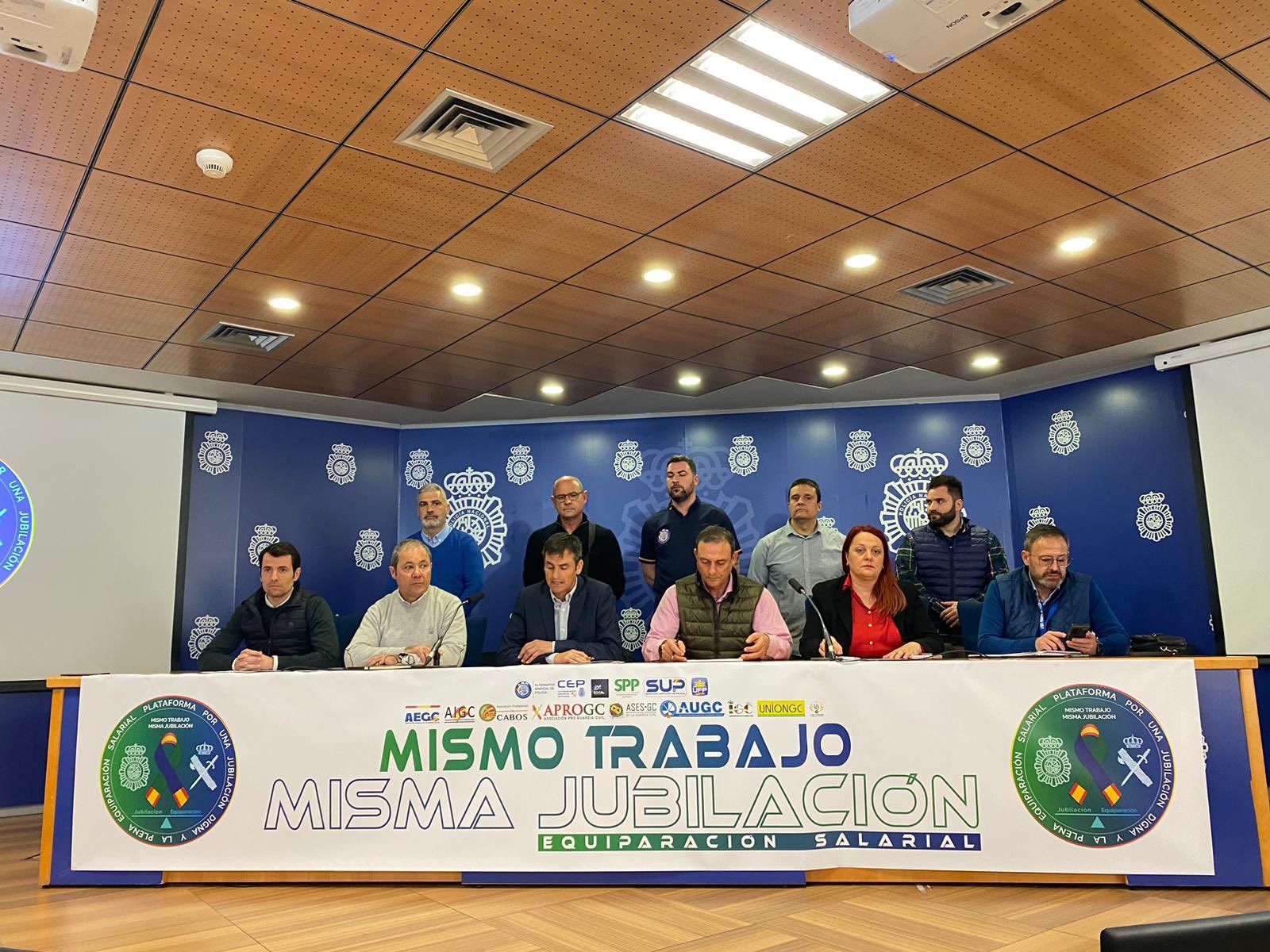 Estos sindicatos y asociaciones profesionales, que se han unido en la "Plataforma por una jubilación digna", exigen que se corrijan los "agravios" en jubilaciones anticipadas y retribuciones que provoca que policías y guardias civiles se tengan que mantener en activo hasta los 65 años de edad porque, de lo contrario, si acceden a la jubilación anticipada, perderían el 25 por ciento de su retribución mensual.