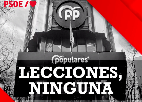El PSOE tira del "y tú más" para tratar de quitarse de encima el caso Mediador que amenaza con salpicar el final de la legislatura de Pedro Sánchez y volar por los aires la campaña electoral de las municipales y autonómicas de mayo. Para eso, han publicado un vídeo en su cuenta de Twitter con todos los casos de corrupción o presuntos del PP diciendo que "no es cuestión de poner el ventilador" ni "de enfangar la política", pero que "lecciones del PP ¡ninguna!".