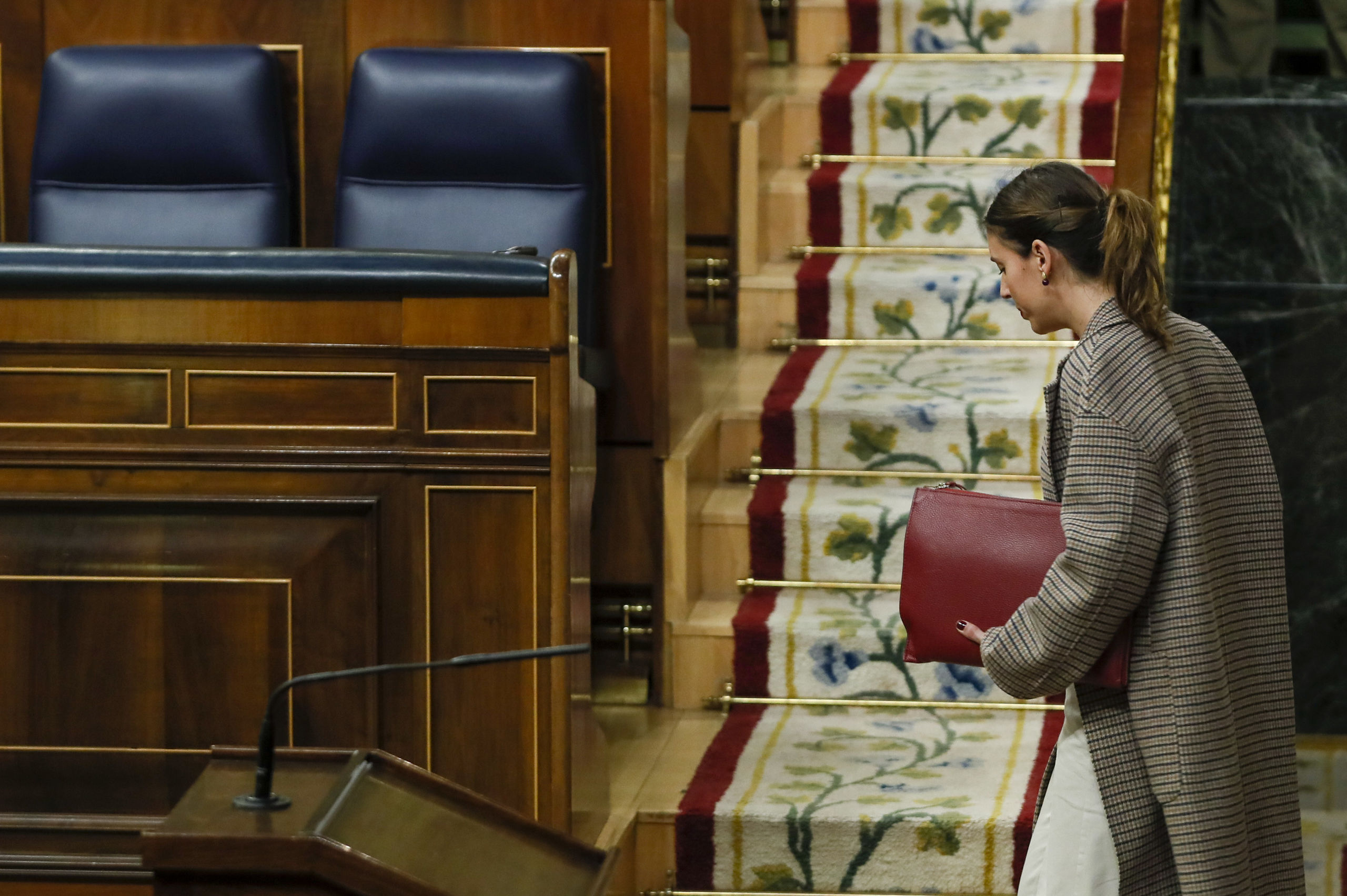 La bancada azul del Gobierno ha estado este martes por la tarde muy poco concurrida durante el debate de la reforma de la ley del solo sí es sí impulsada por el grupo socialista. La ministra de Igualdad, Irene Montero, tan solo ha contado con el apoyo de la titular de Derechos Sociales, Ione Belarra, que ha modificado su agenda para acompañarla.