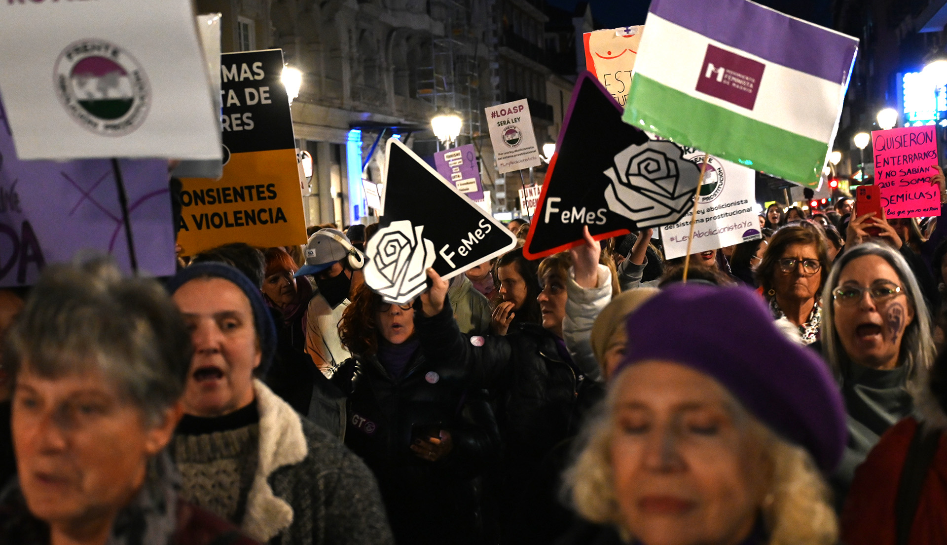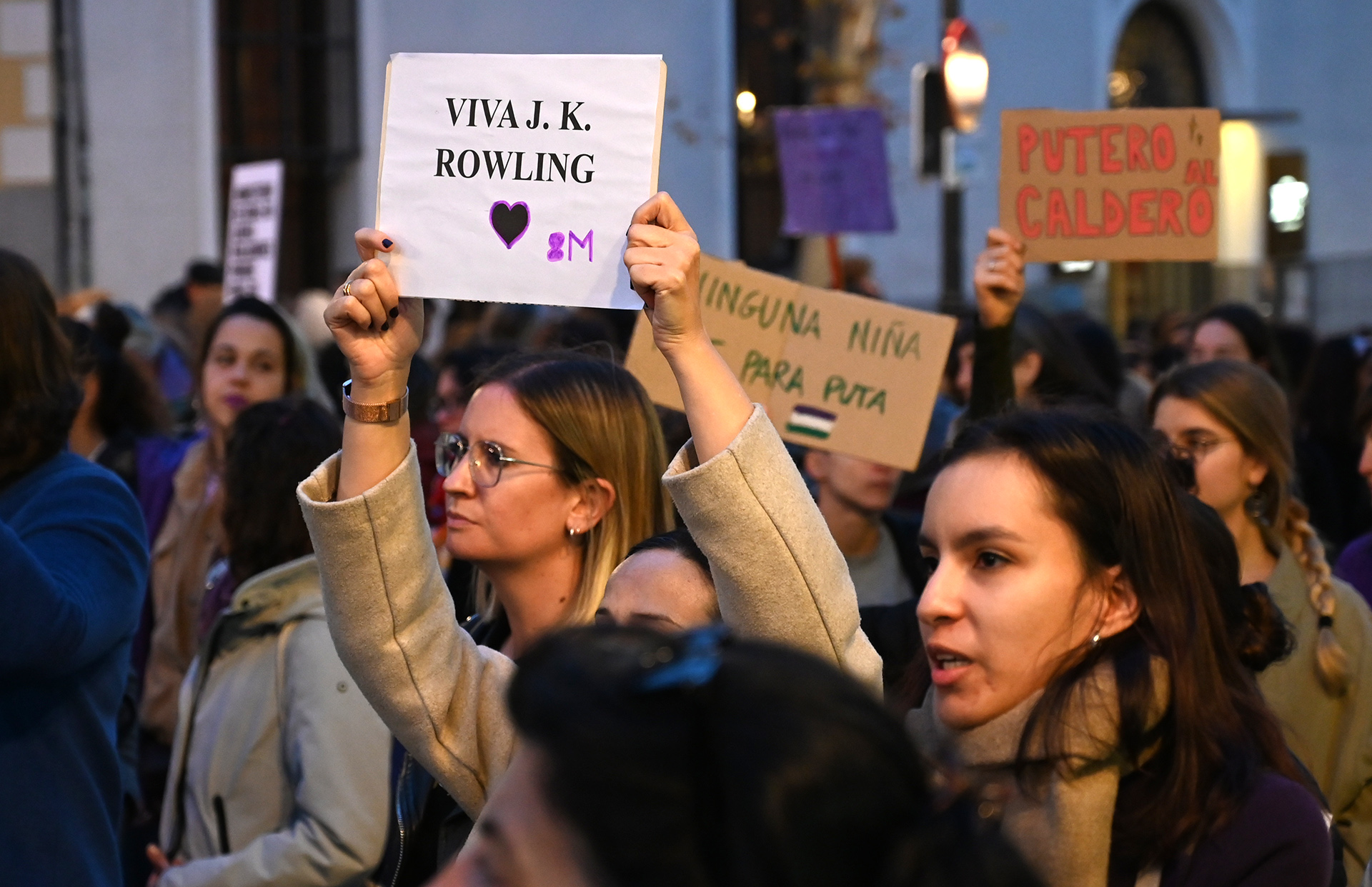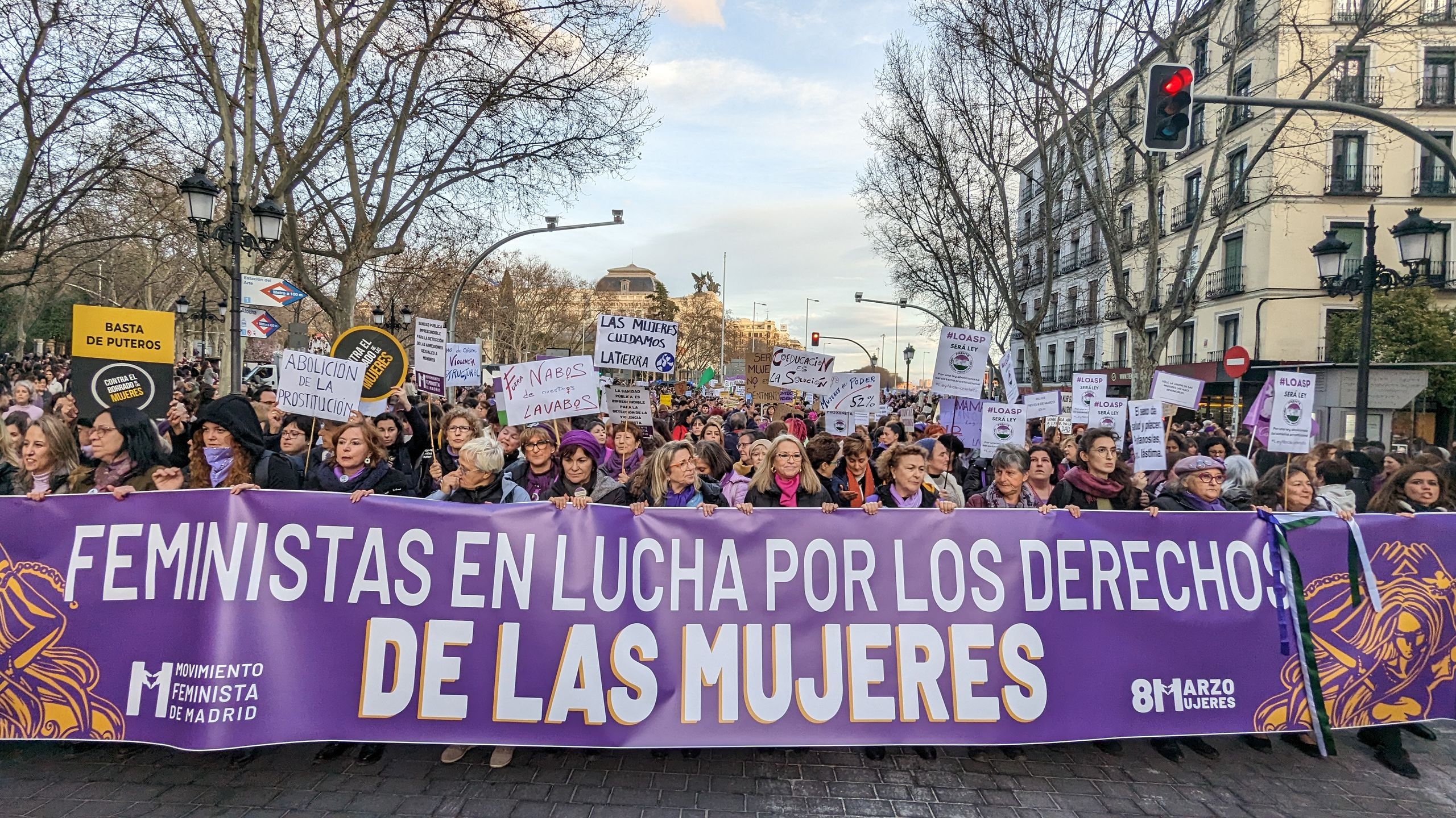 En la manifestación ‘rebelde’ durante el 8M que se ha desarrollado sin incidentes en la calle Atocha de Madrid, se han podido escuchar cánticos como 'El feminismo es abolicionista', 'Ser mujer no es un sentimiento', 'Irene machista, hazte feminista'.