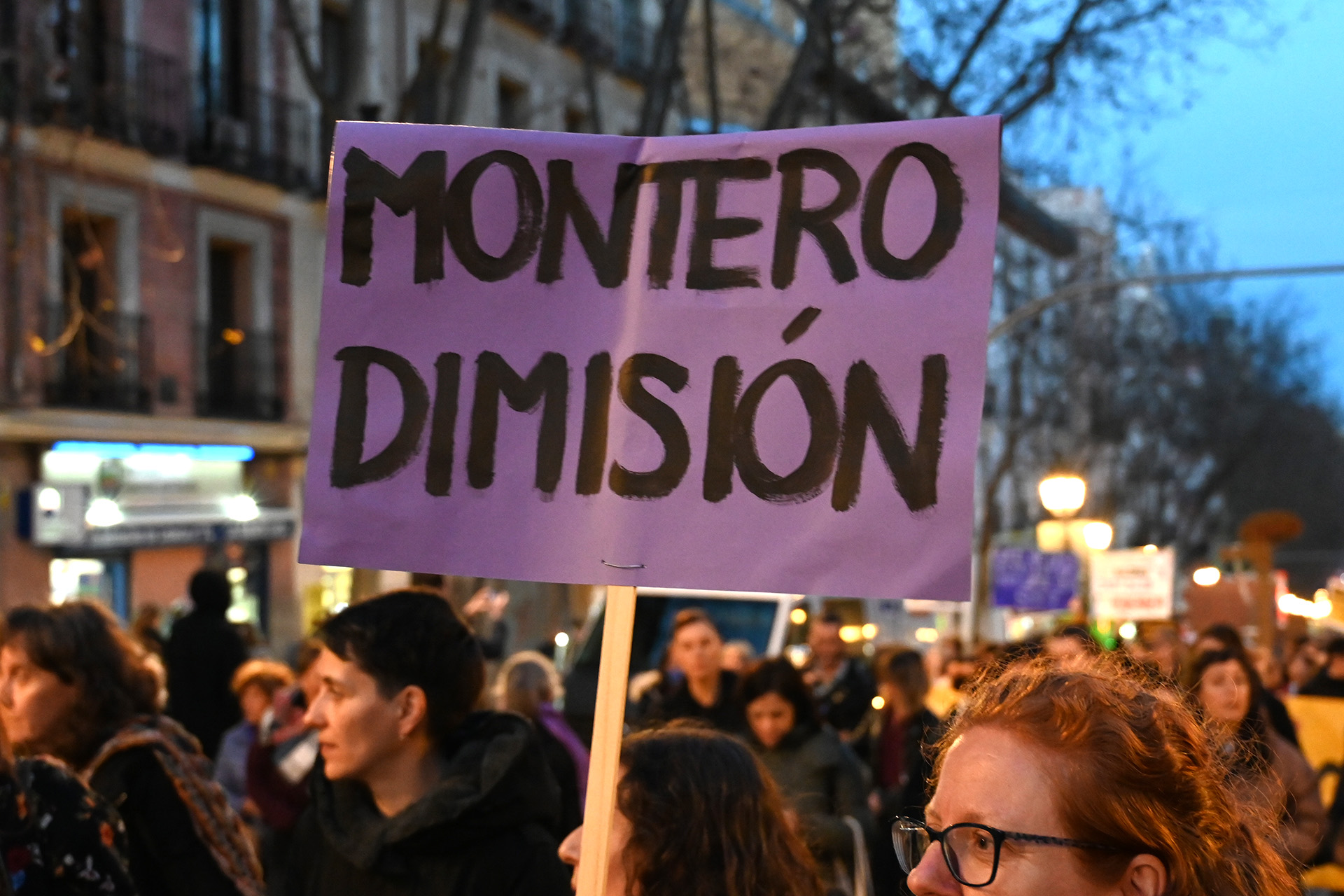 En la manifestación se han escuchado consignas contra la ley Trans del Gobierno, además de pedir la dimisión de Montero y la reprobación del presidente del Gobierno, Pedro Sánchez.