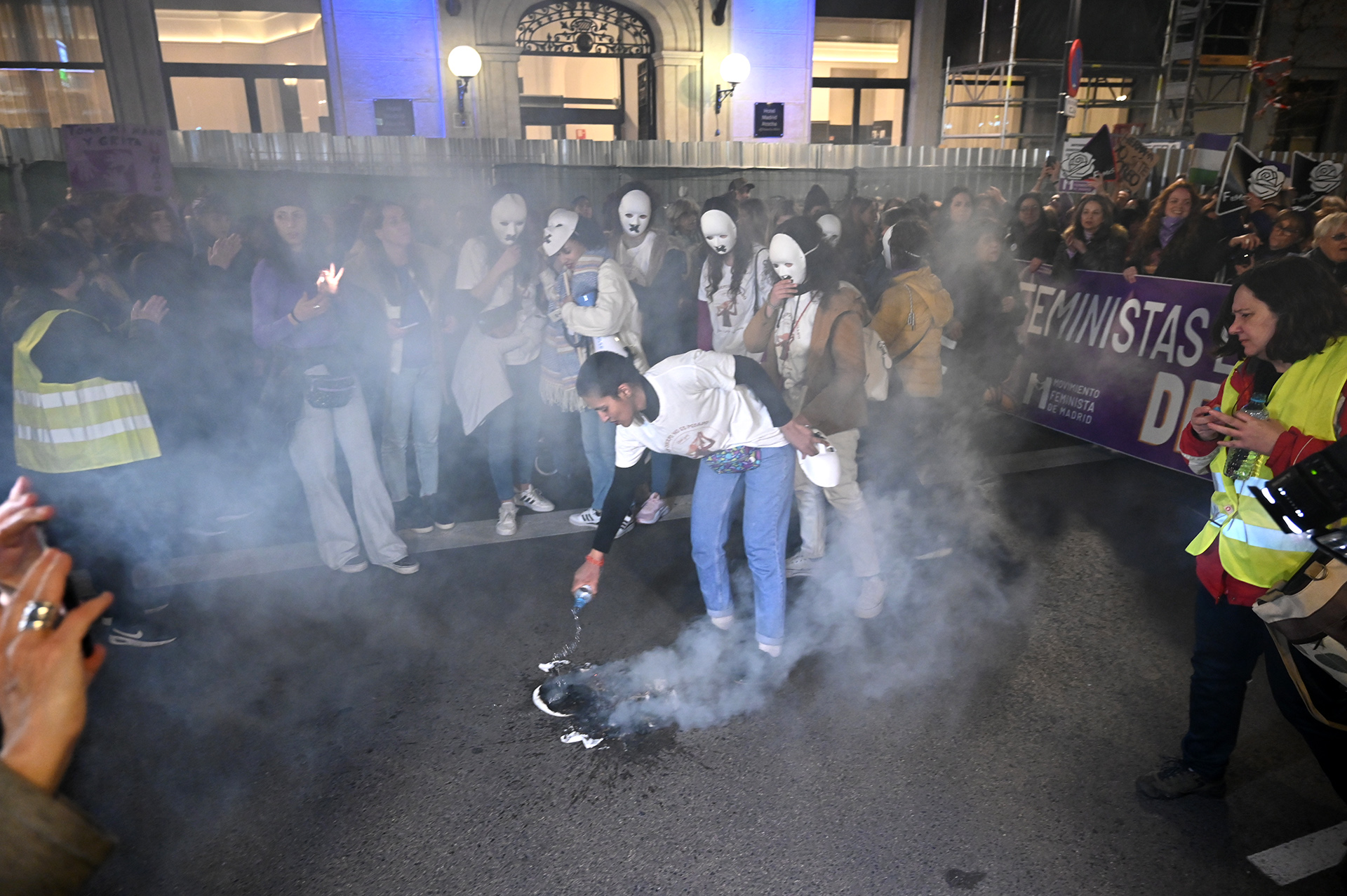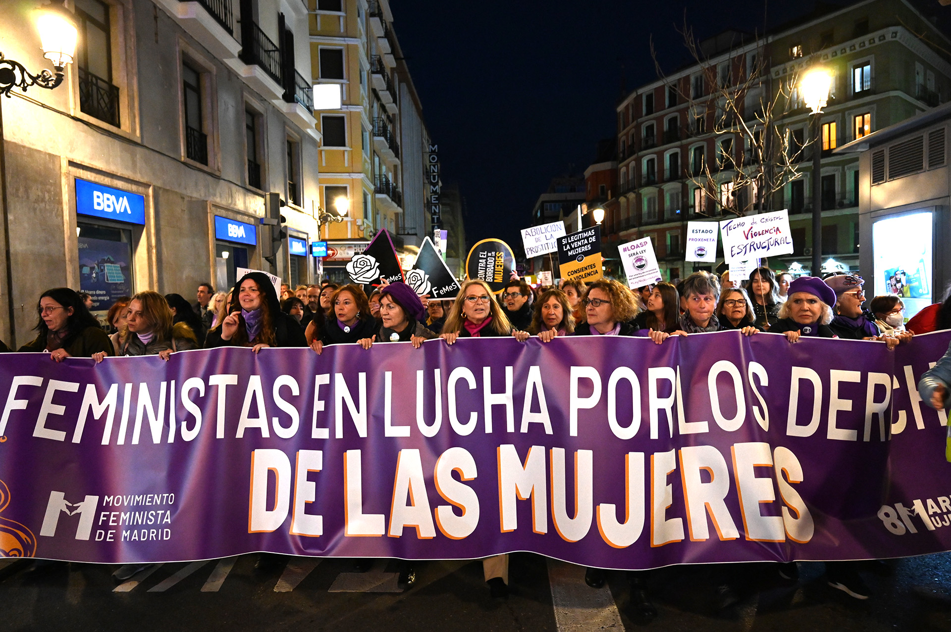 Las mejores imágenes de la manifestación organizada por el Movimiento Feminista de Madrid que se ha desarrollado en la calle Atocha de Madrid durante la jornada del 8 de marzo. La manifestación ha arrancado pasadas las 18:30 horas al grito de "dimisión Irene Montero" o "el feminismo es abolicionista".