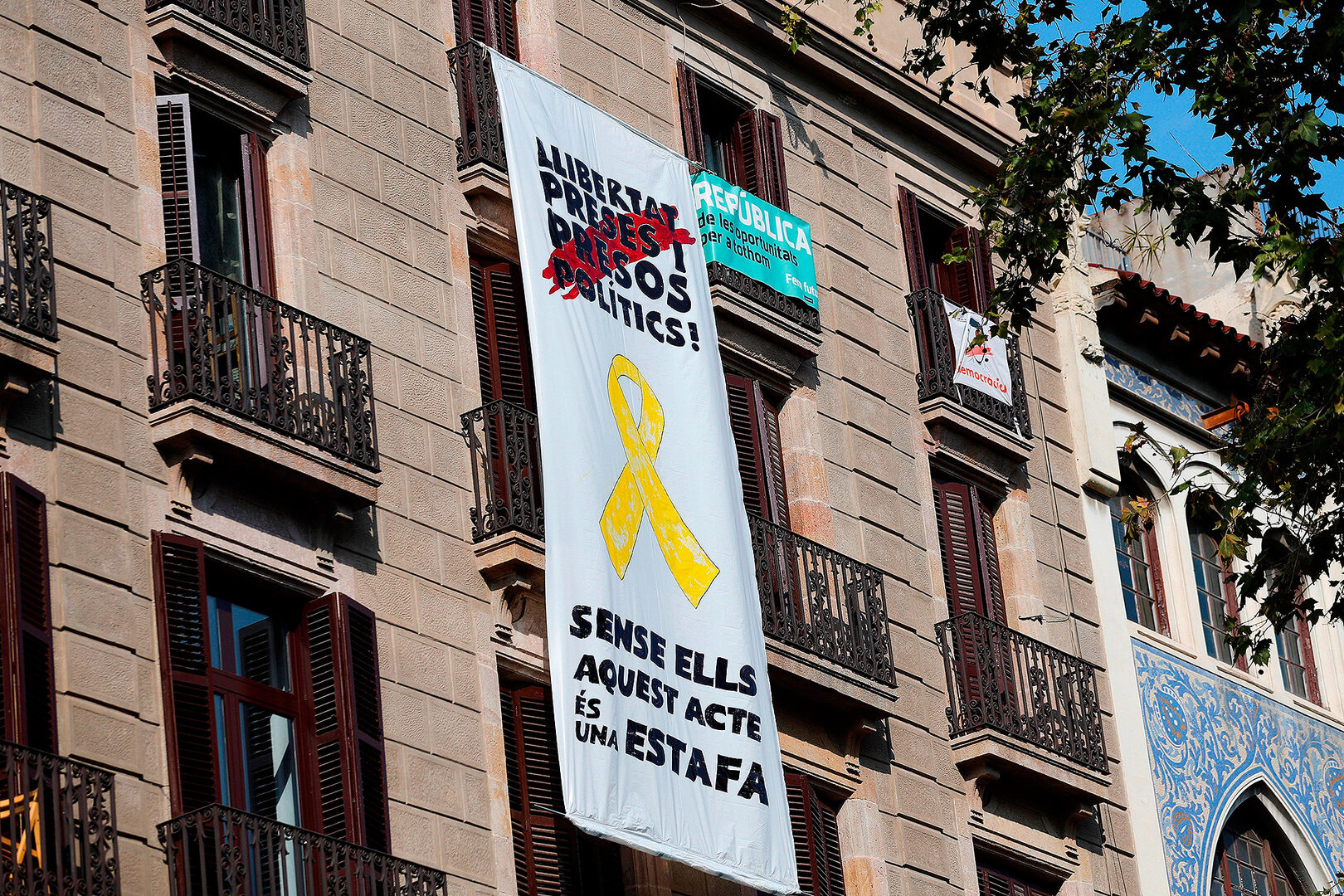 La Generalidad catalana y los ayuntamientos gobernados por independentistas deberían retirar de inmediato las banderas esteladas, los lazos amarillos y las pancartas separatistas que presiden fachadas e interiores de los edificios públicos de la administración catalana y cientos de sedes municipales. En un auto del pasado 15 de marzo, el Tribunal Supremo inadmite el recurso de casación interpuesto por la abogacía de la Generalidad contra la sentencia del Tribunal Superior de Justicia de Cataluña (TSJC), de 28 de abril de 2021, que obligó a retirar la pancarta colocada en el Palau reclamando la "libertad de los presos políticos y exiliados" en catalán y en inglés, y un lazo amarillo.