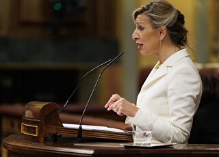 Recado a Podemos y críticas al líder del PP, Alberto Núñez Feijóo, asegurando que "en nuestro país tenemos un partido que representa muy bien el neoliberalismo. Se llama PP, se llama Alberto Núñez Feijóo. Es el partido del no" . En opinión de la vicepresidenta, "el neoliberalismo ha fracasado intelectualmente, pero falta derrotarlo políticamente, porque sigue estando fuerte".