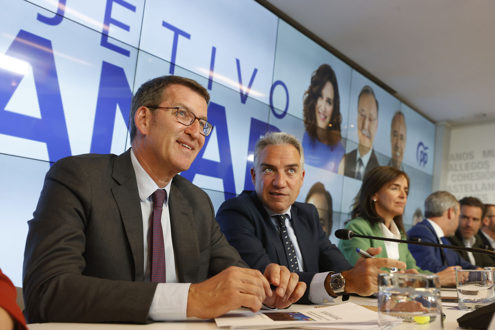En la reunión de la cúpula y los barones populares, el líder del PP no ha querido dar muestra de debilidad ninguna a pesar de que ha reconocido que se está encontrando con más resistencia del PSOE de la que inicialmente esperaba. "Sé perfectamente que el 28 de mayo, el partido de Sánchez aguantará mejor que en las generales pero eso es la lógica electoral. Nosotros no estamos aquí para pensar en pequeño ni para aspirar a un aprobado raspado. No me conformo resultado 2019 y no me conformo con mantener tres gobiernos autonómicos", ha dicho sobre la Comunidad de Madrid, Murcia y Ceuta (lugares en los que ya gobierna el PP).