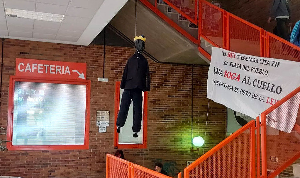 Es lo que ha ocurrido este jueves, cuando la asociación Libertad Sin Ira ha denunciado la aparición en la Facultad de Ciencias Políticas de un muñeco con corona colgando de una soga. "Las instituciones no pueden seguir tolerando la violencia contra el Estado" decía el grupo en su mensaje en Twitter.
