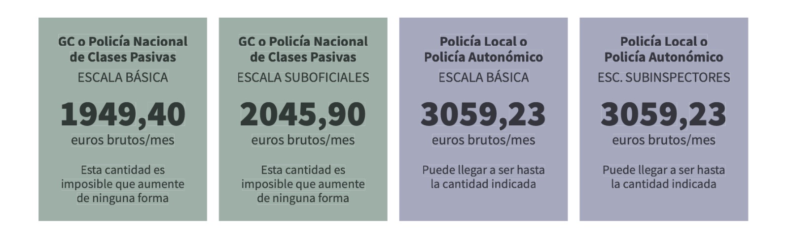 - 2. GC o Policía Nacional Escala Suboficiales: 2.045,90 euros brutos/mes (esta cantidad es imposible que aumente de ninguna manera).