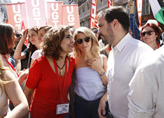 "Sindicatos y gobierno exhiben unidad frente a los empresarios". Sindicatos y Gobierno, Gobierno y sindicatos, lo mismo da que da lo mismo. "Las cinco izquierdas exhiben su fractura: Irene Montero pasea ante Yolanda Díaz con el lema 'Tu silencio no te protegerá". "El de ayer fue un 1 de mayo en el que quedó de manifiesto la buena sintonía del Gobierno y los sindicatos, reforzada por la retórica frente a un supuesto enemigo común. Al mismo tiempo, las formaciones de izquierdas exhibieron su fractura, si bien parece unirlas, a juzgar por sus discursos, un mismo modelo de sociedad fundamentado en el enfrentamiento y el ataque a los empresarios", dice el editorial.
