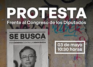A partir de las diez y media de la mañana, Foro Madrid, ha convocado esta protesta frente al Congreso de los Diputados para criticar la visita oficial del presidente de Colombia a España.