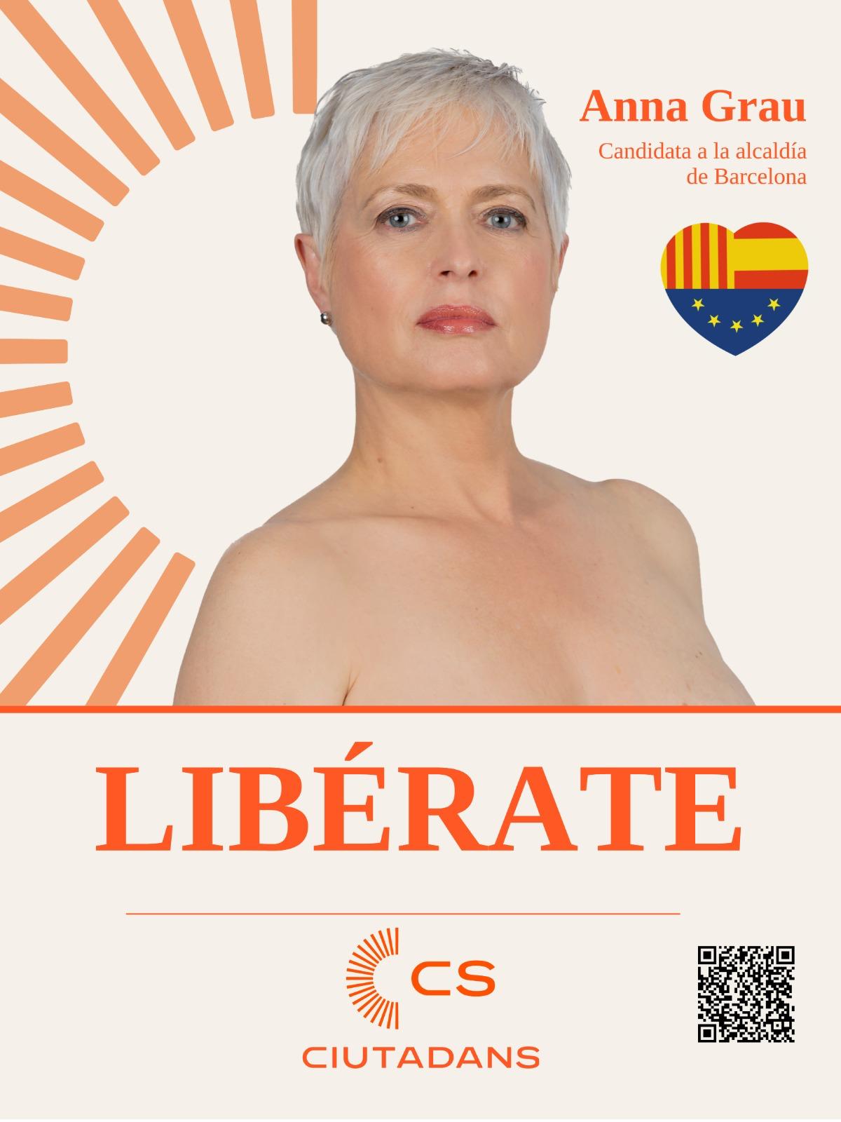Tampoco les ha gustado el cartel de Anna Grau, que posa desnuda en un guiño a lo que fue la primera campaña de Ciudadanos con el cartel de un joven Albert Rivera también sin ropa.