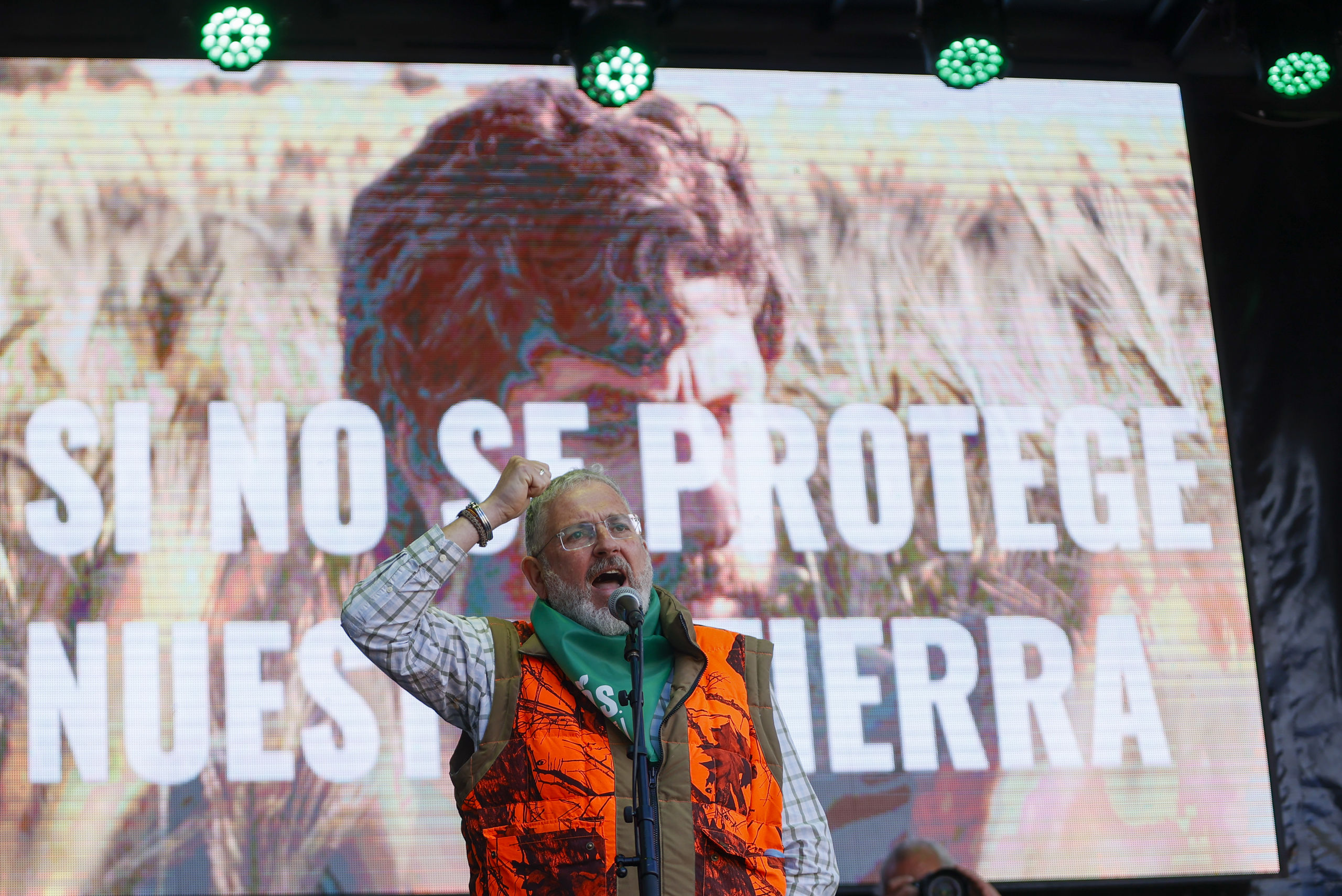 Carlos Bueno, portavoz de SOS Rural, interviene en la manifestación de Madrid.
