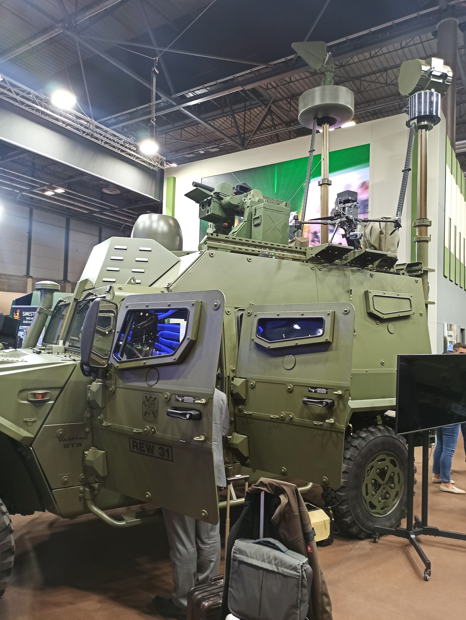 Vehículo blindado del Ejército de Tierra con el sistema Cervus III integrado para combatir posibles RPAS (sistemas remotamente tripulados) hostiles.