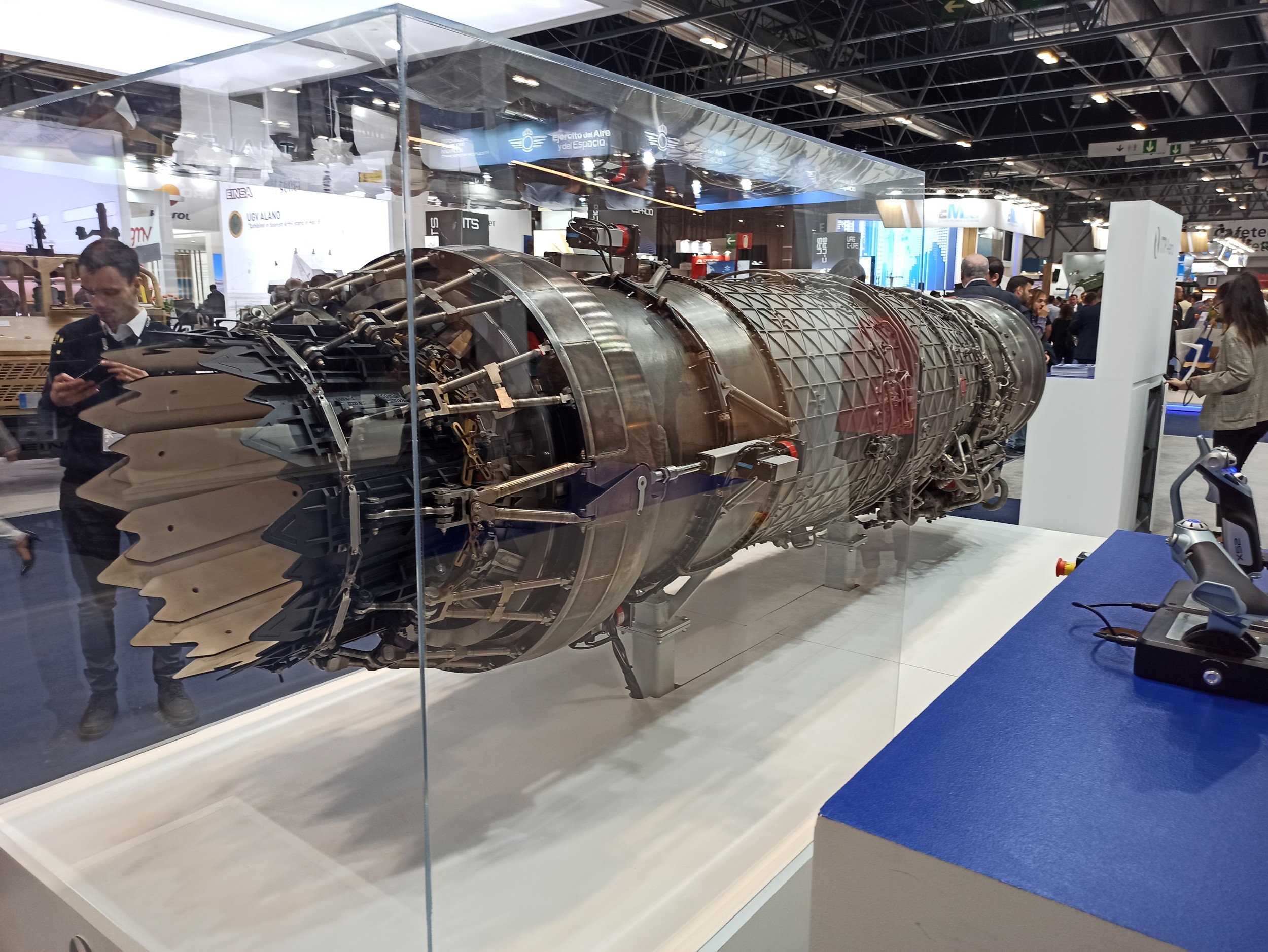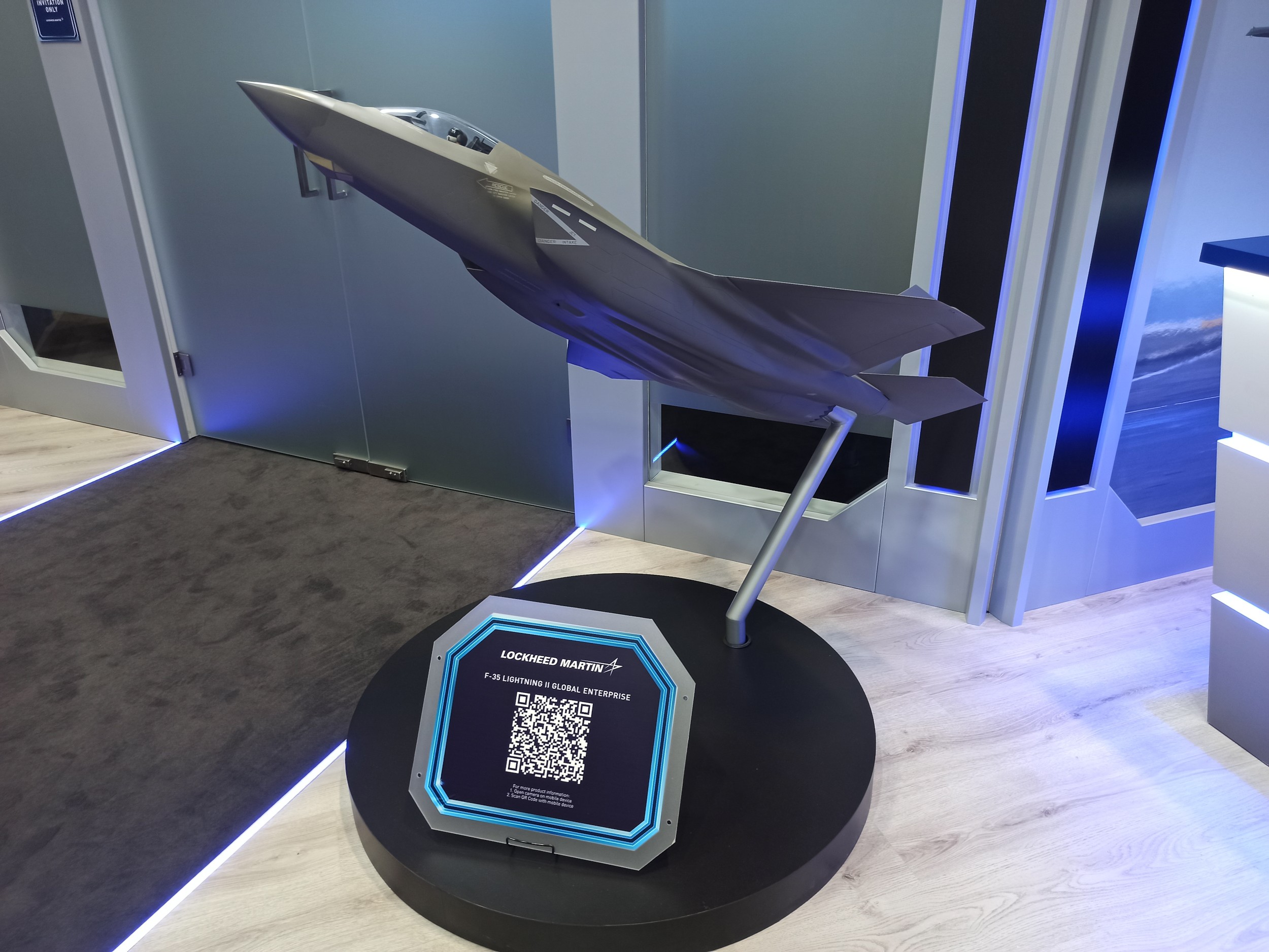 Maqueta del FCAS, el futuro avión europeo de sexta generación, en el stand de Dassault