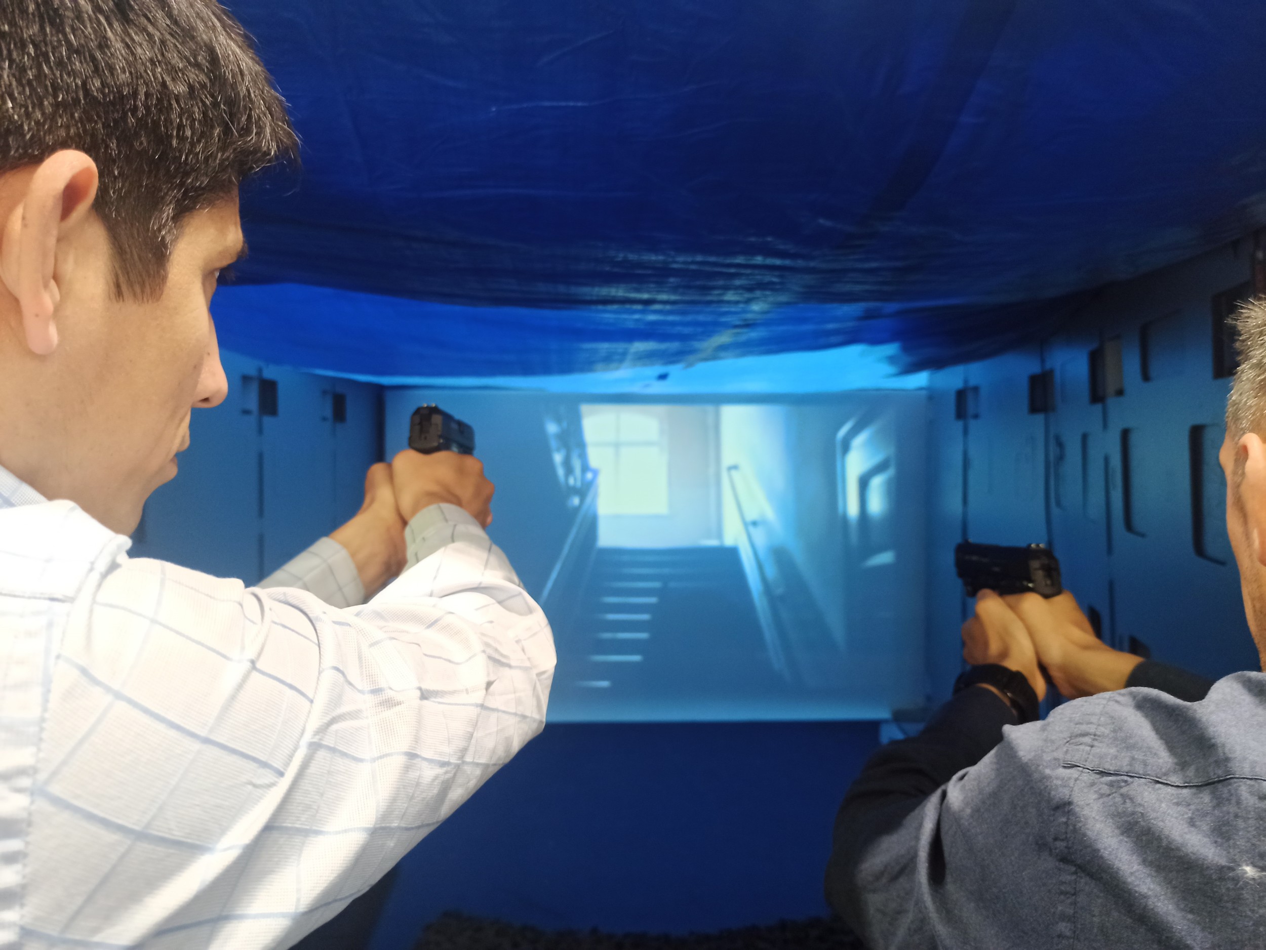 Simulador de tiro de la Policía Nacional. Puede recrear múltiples escenarios o misiones