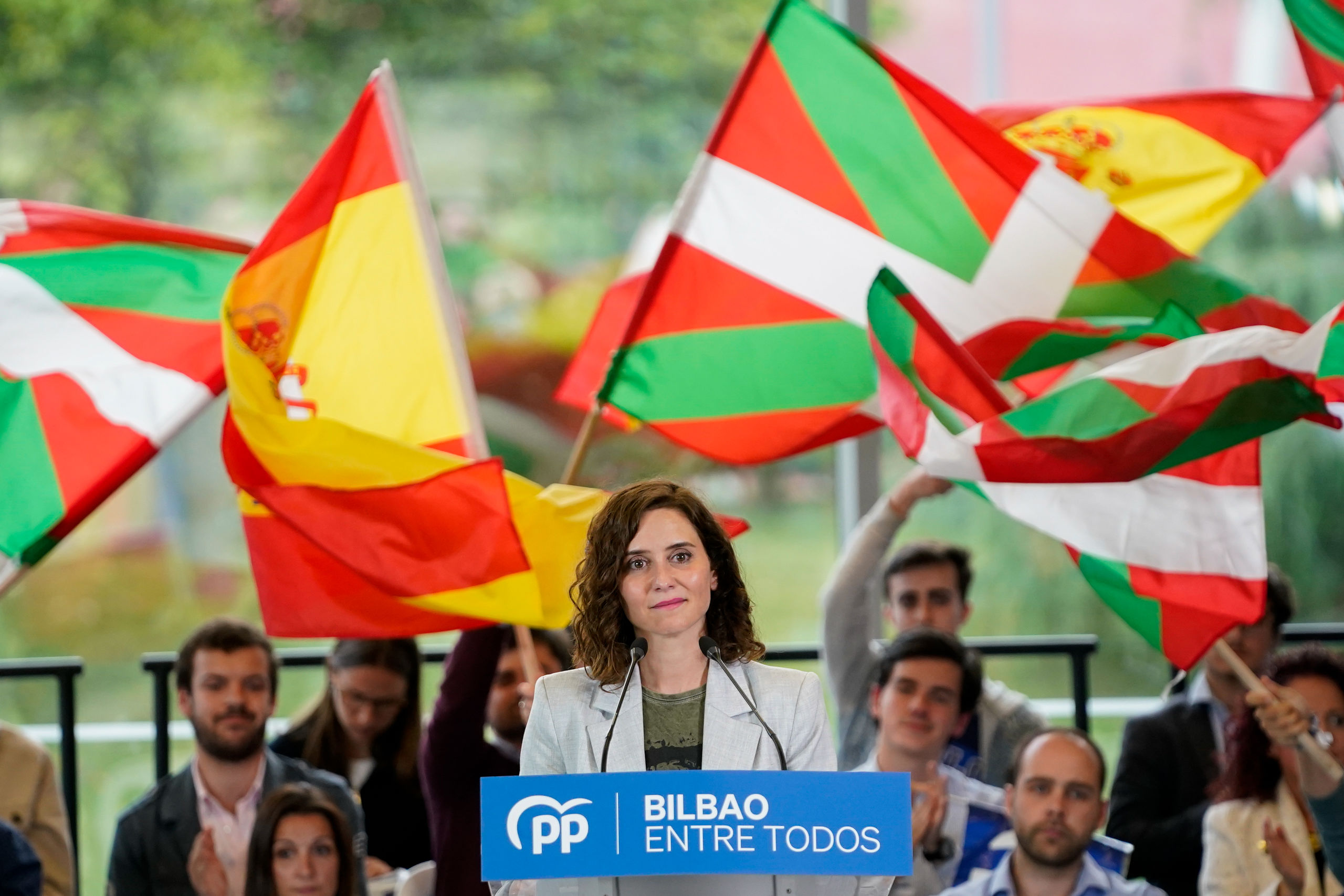 Ayuso insistió en Bilbao en la necesidad de explorar la vía para que Bildu pueda ser ilegalizado. "Debería pronunciarse el Parlamento y remitir el asunto al Supremo para que nos diga si un partido así cumple la Ley de Partidos y si es legal. Y quiero que quede claro: no significa si un partido nos gusta o no; no hablamos de prohibir lo que no nos gusta, estamos hablando simplemente de justicia. Y yo creo que sí, que el País Vasco, que España entera y que la Unión Europea necesitan que sus más altos poderes, el legislativo y el judicial, se pronuncien sobre esto. Y quizá, si no lo hacemos, nos vamos a arrepentir pronto", advirtió entre el aplauso de los militantes y simpatizantes congregados en el Palacio Euskalduna.