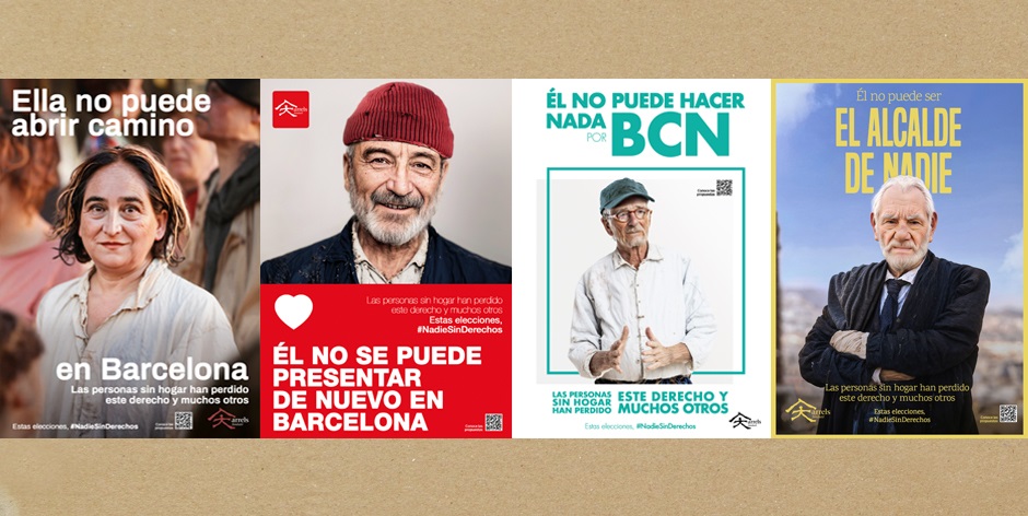 La Fundación Arrels denuncia que sólo el 32% de las personas que viven en la calle en Barcelona tienen derecho a voto. Según su censo, en Barcelona hay unas 1.200 personas que duermen al raso y la mayoría no cumple con los requisitos exigidos para poder votar. "Necesitamos políticas transformadoras que luchen contra el sinhogarismo en el ámbito municipal y visibilizar el hecho de que las personas sin hogar están excluidas, en la práctica, del derecho a la plena ciudadanía: no podrán presentarse como candidatas a unas elecciones, hacer propuestas políticas e incidir en la sociedad; muchas veces, tampoco tienen derecho a voto", asegura Arrels en su campaña.