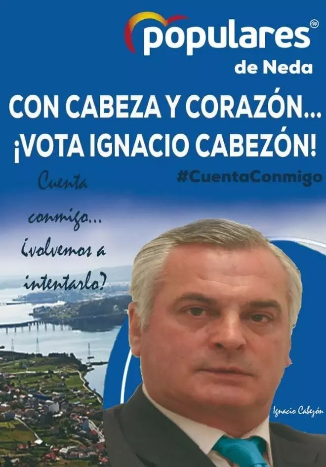 Y tan cabezón es Ignacio Cabezón que pide el voto "con cabeza y corazón" para Neda. Tanta cabeza que casi no cabe en el cartel.